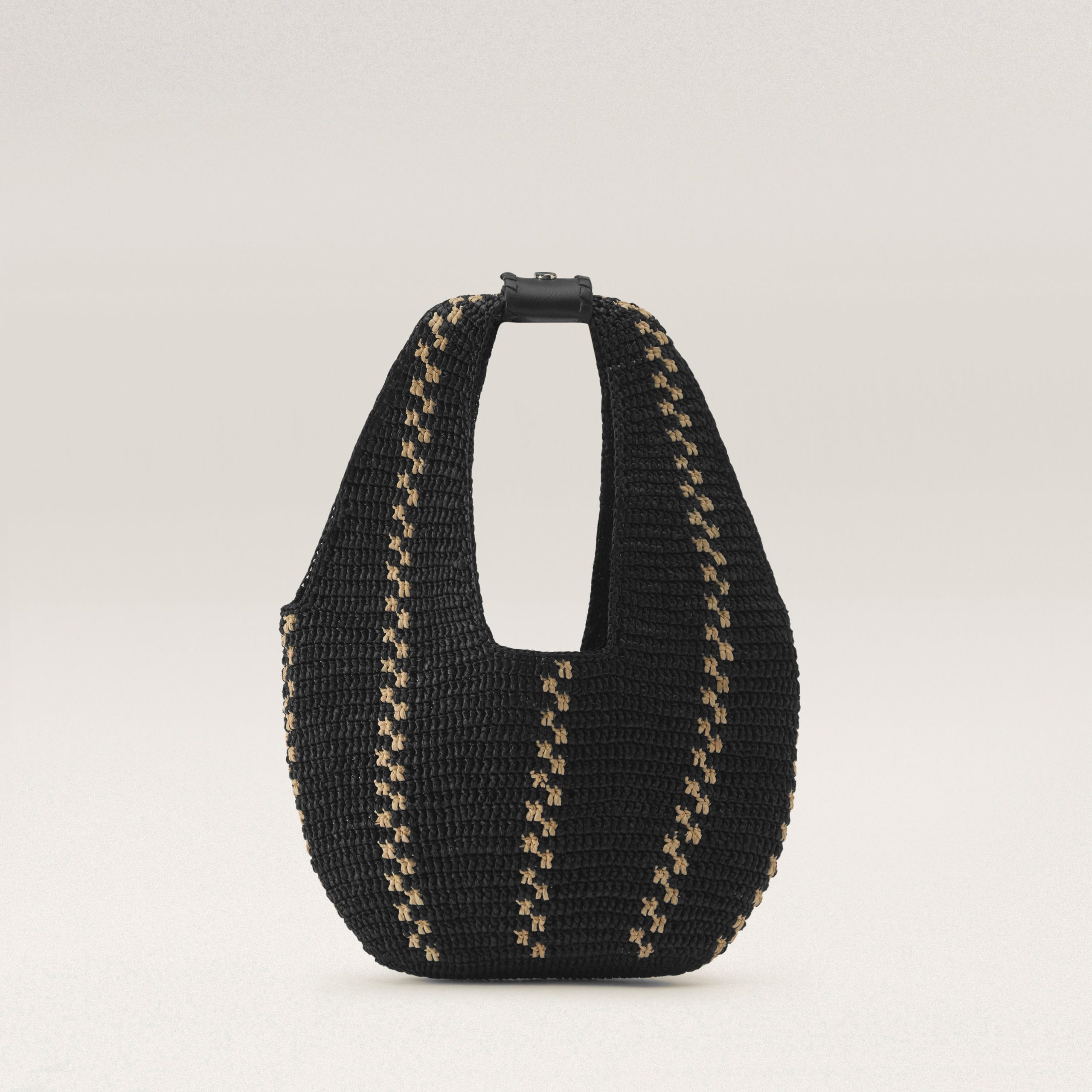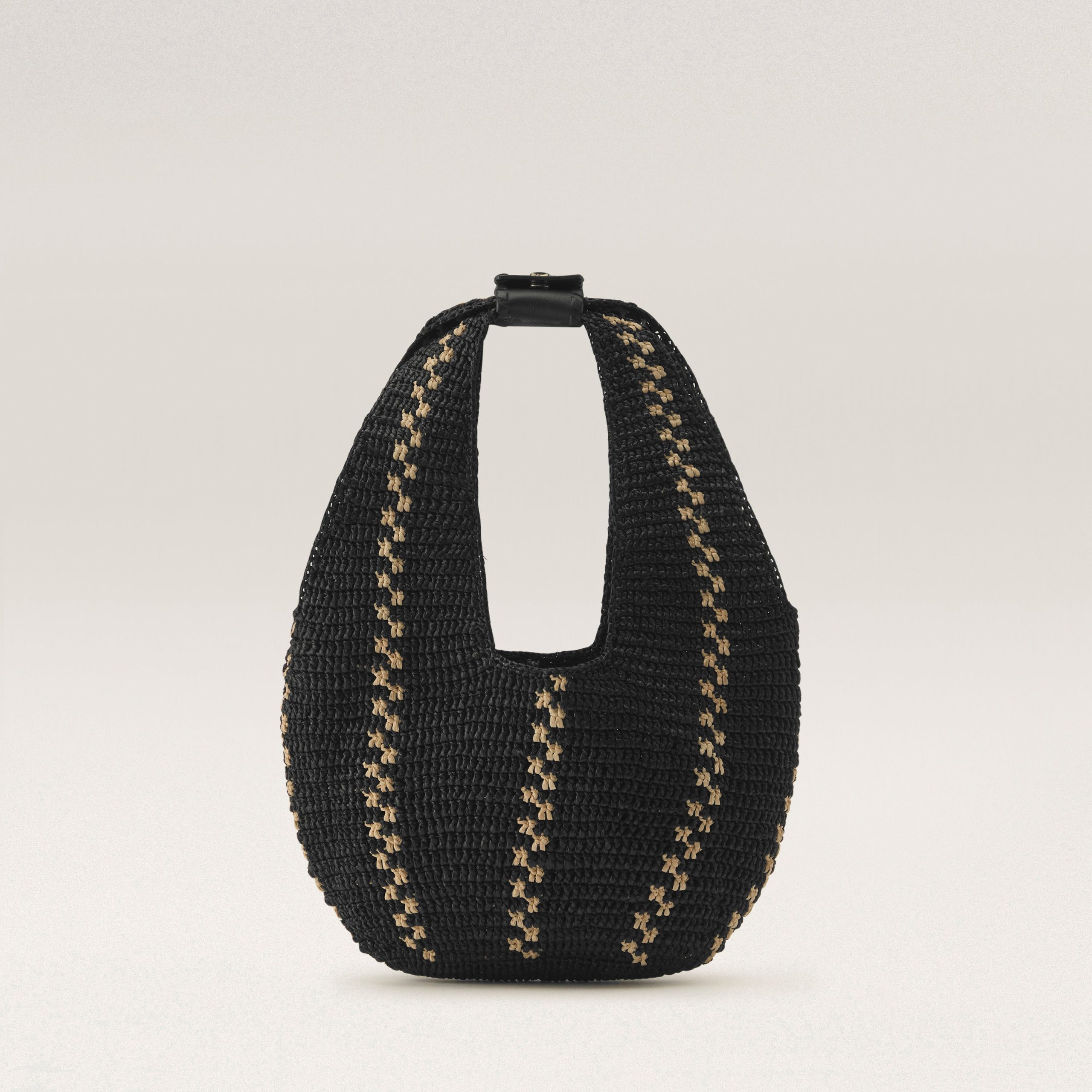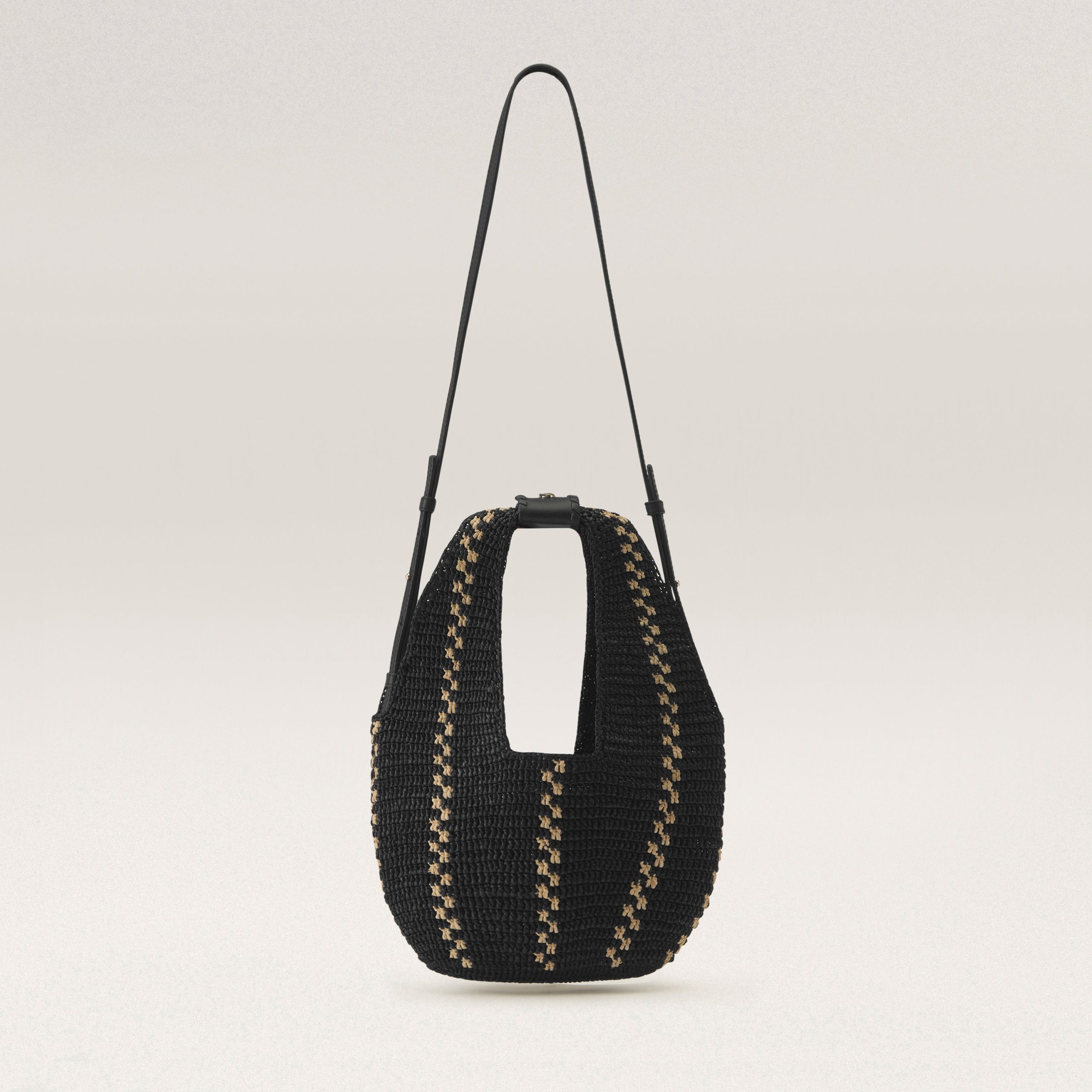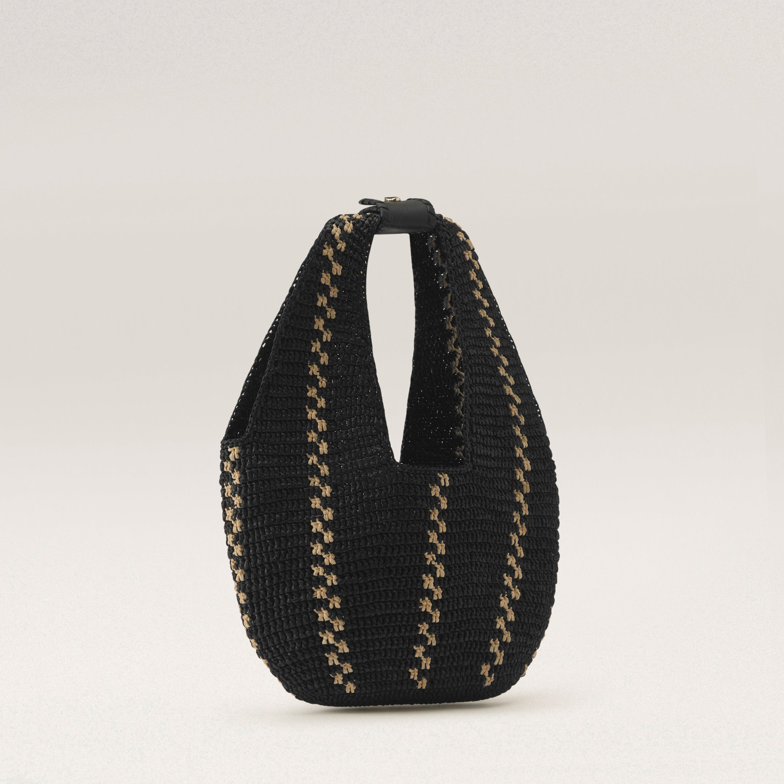Introducing the Aquarius Hobo, a showpiece of the season. A feat of craftsmanship, each bag takes over 37 hours to complete and is hand-crocheted in the intricate Nagaraya stitch – one of the most complex techniques. Stitched one row at a time, the artisan carefully counts and controls each raffia leaf to ensure a precise and flawless silhouette. The four-piece leather handles are adorned with whipstitch detail and signature seed snap buttons. Unlined for a lightweight feel, with an easy 24cm handle drop, Aquarius is the perfect companion for your next trip.Mini Hobo BagHand Crafted Raffia Crochet in Kūru Stitch37.8 hours to produceVertical Stripe ContrastLWG Certified Leather Strap and Handles w/Whipstitch Detail Signature Seed Snap ButtonUnlinedHeight38cmWidth28cmDepth4.5cmHandle Drop18cmStrap 55-/+2.5cm