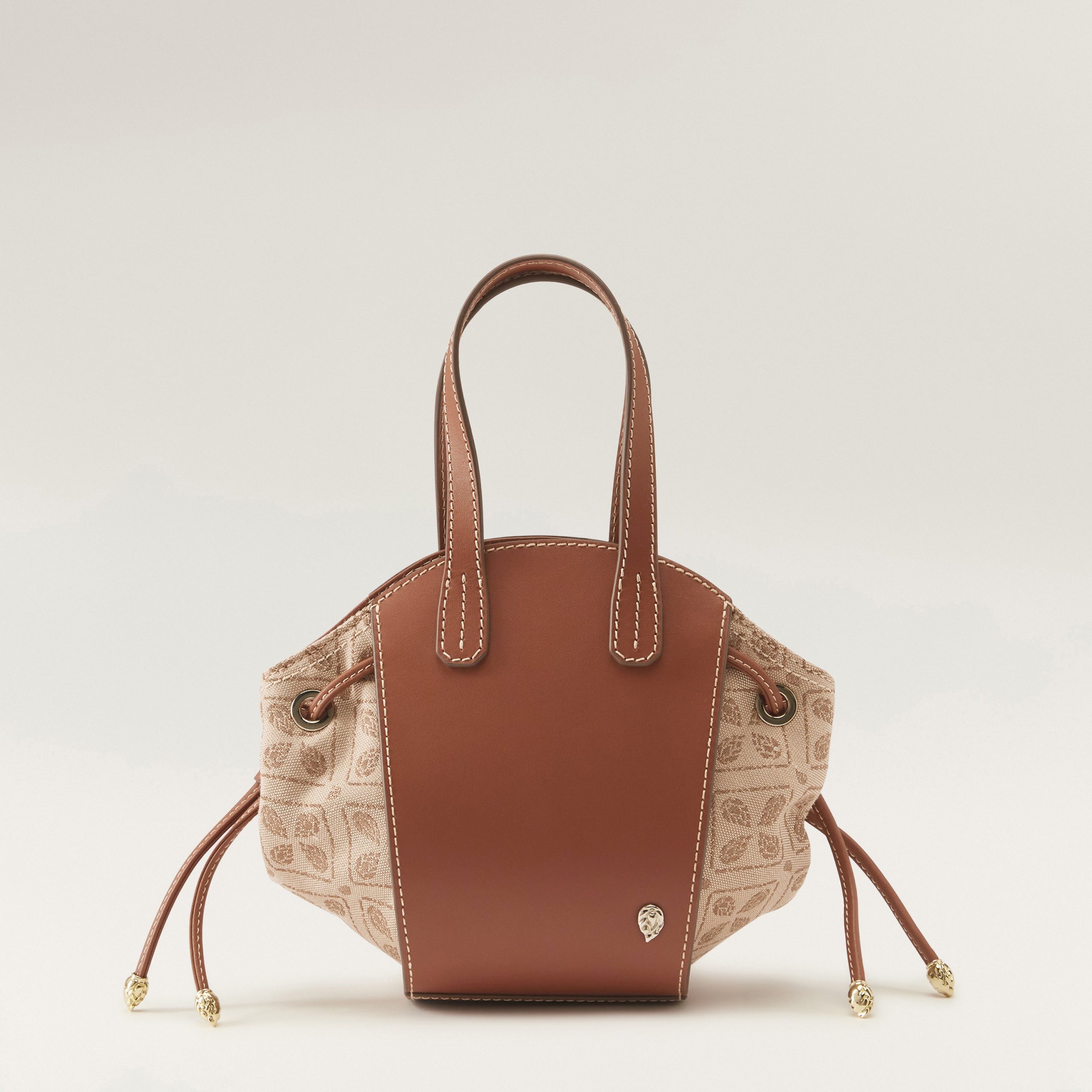The perfect accessory for all your evening (or party) essentials – the Piaf Tote Mini is crafted in our signature jacquard seed print made from recycled materials and is finished with luxurious LWG certified leather panellled trims and detailed drawstrings that are embellished with signature seed toggles.Mini ToteSignature Jacquard Seed Logo Pattern in Recycled Polyester and Cotton Blend LWG Certified Leather Magnetic ClosureSignature Seed Logo and TogglesHeight 20 cmWidth 10.5 cmDepth 8 cmHandle Drop 14 cm