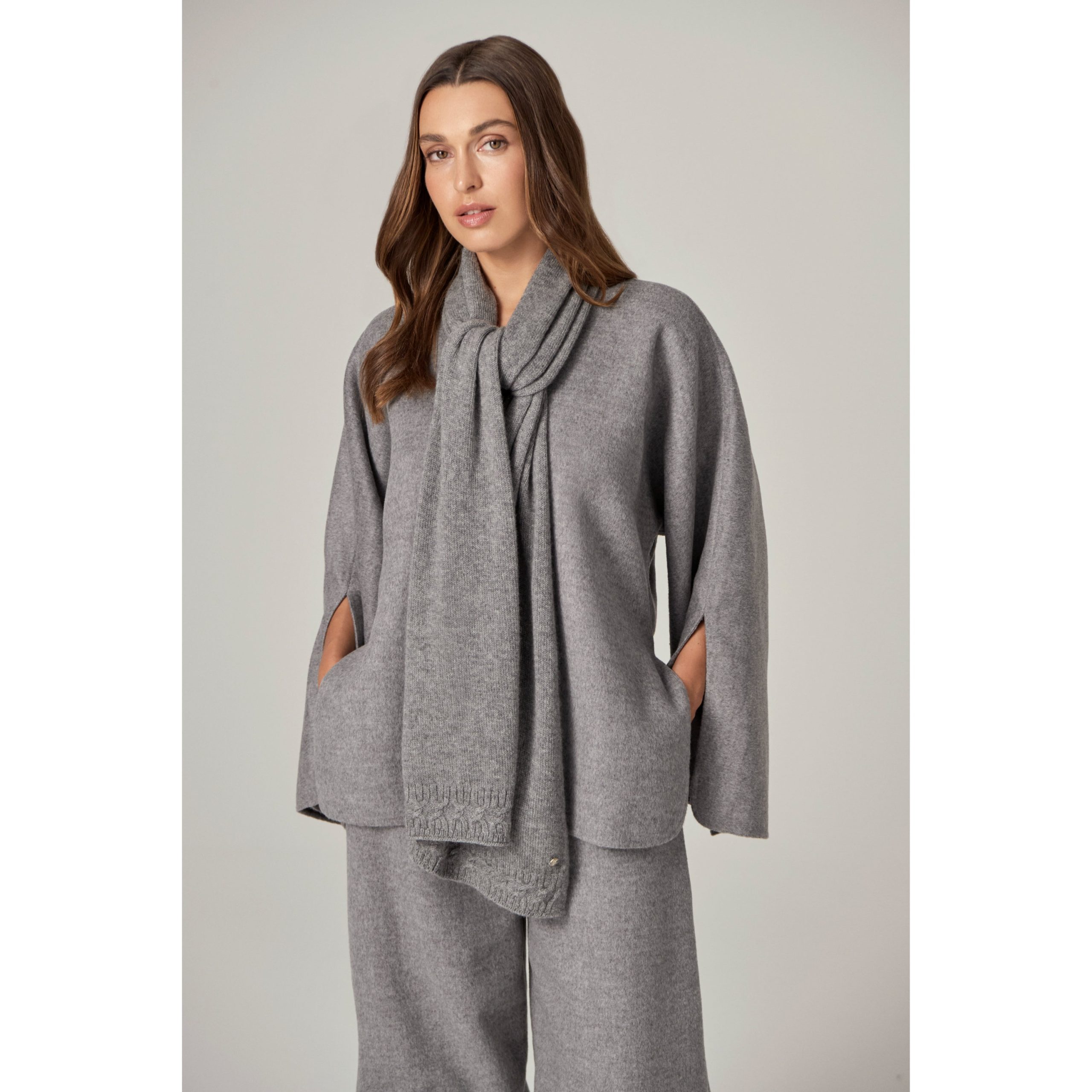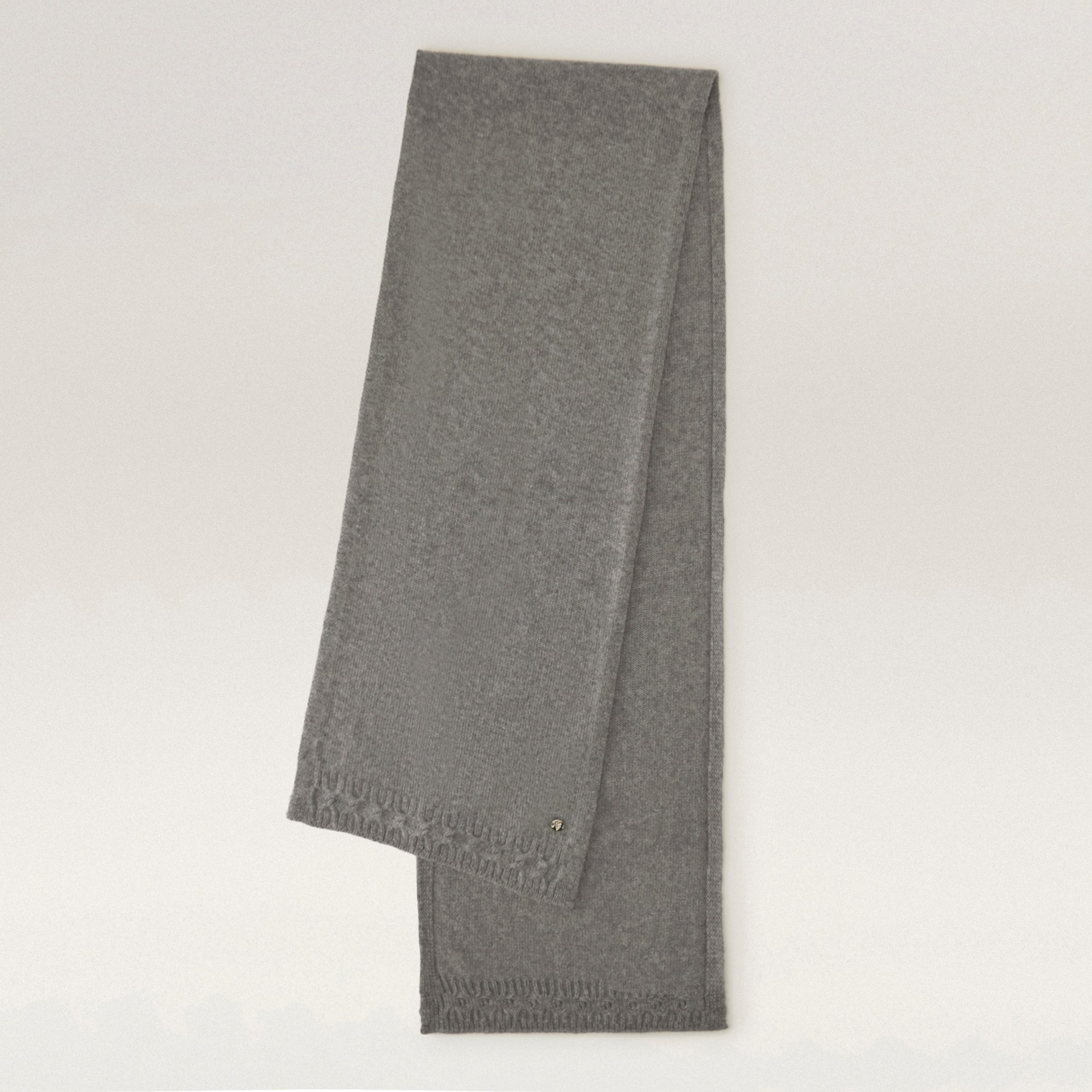 Stay warm in our Candine scarf crafted from 100% cashmere yarn certified by The Good Cashmere Standard. Boasting a classic knit design complemented by a refined cable border. Complete your winter look with the Annette cashmere beanie and Alma cashmere glove. Scarf Certified The Good Cashmere Standard 100% Cashmere Yarn Classic Knit with Cable Border