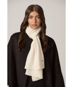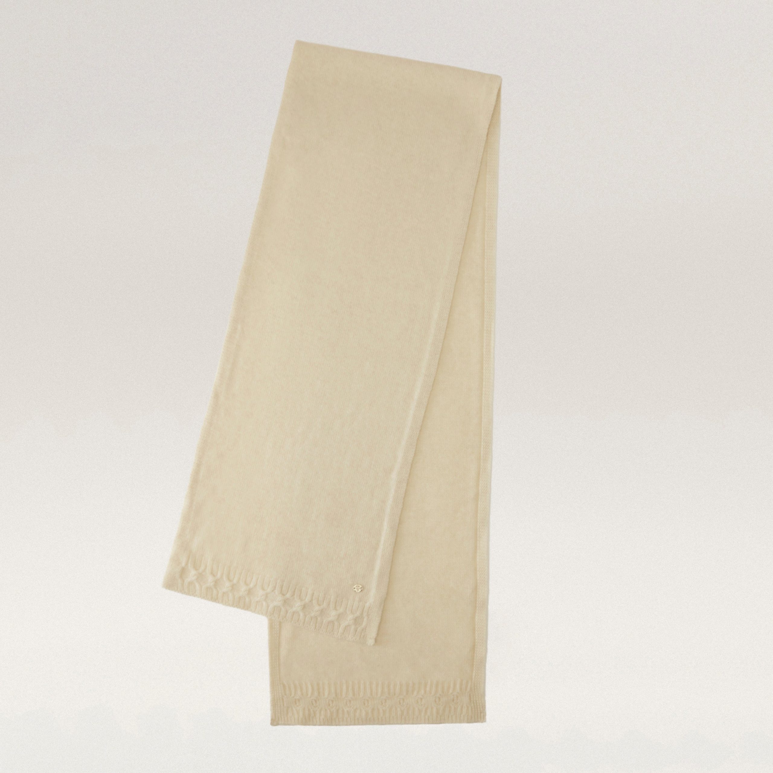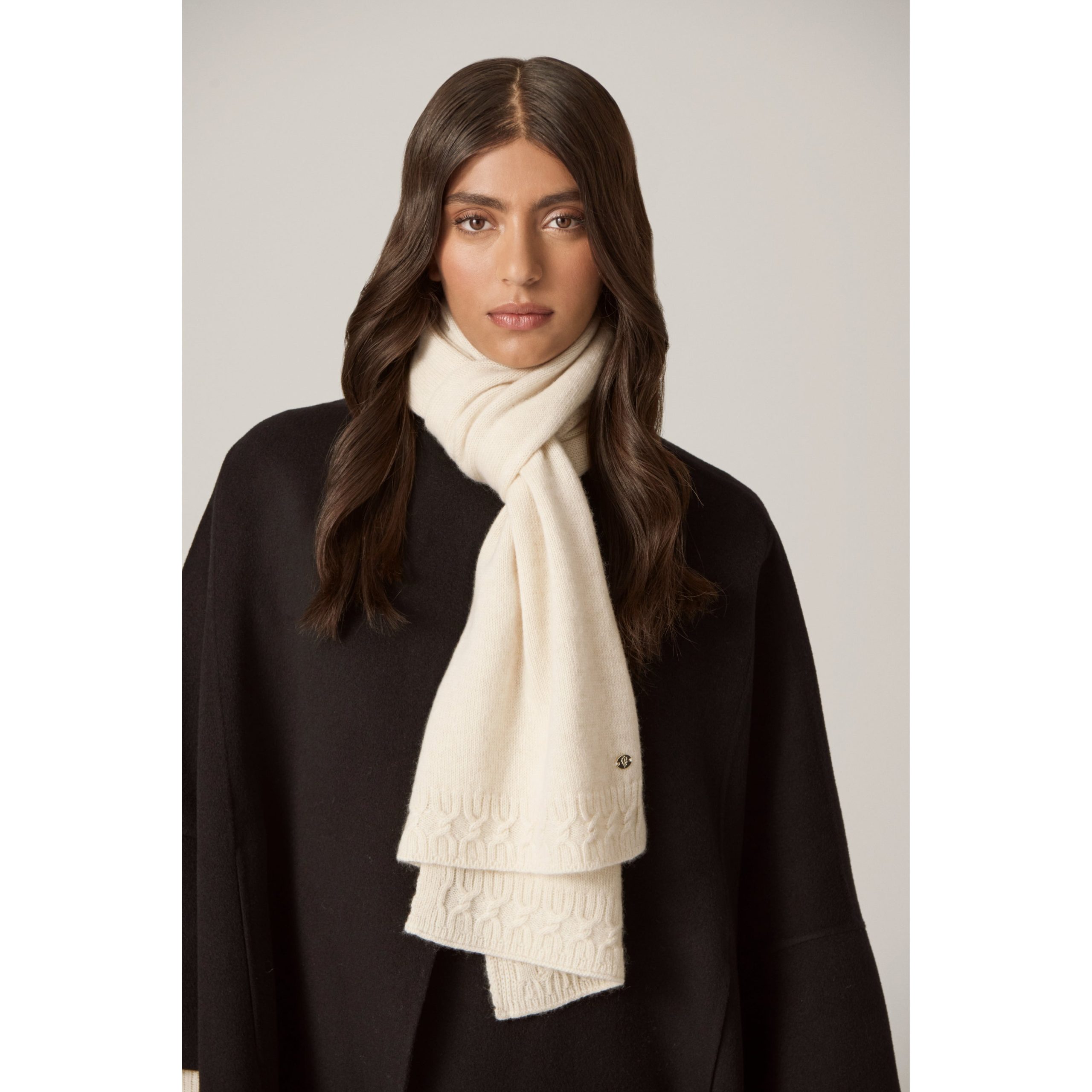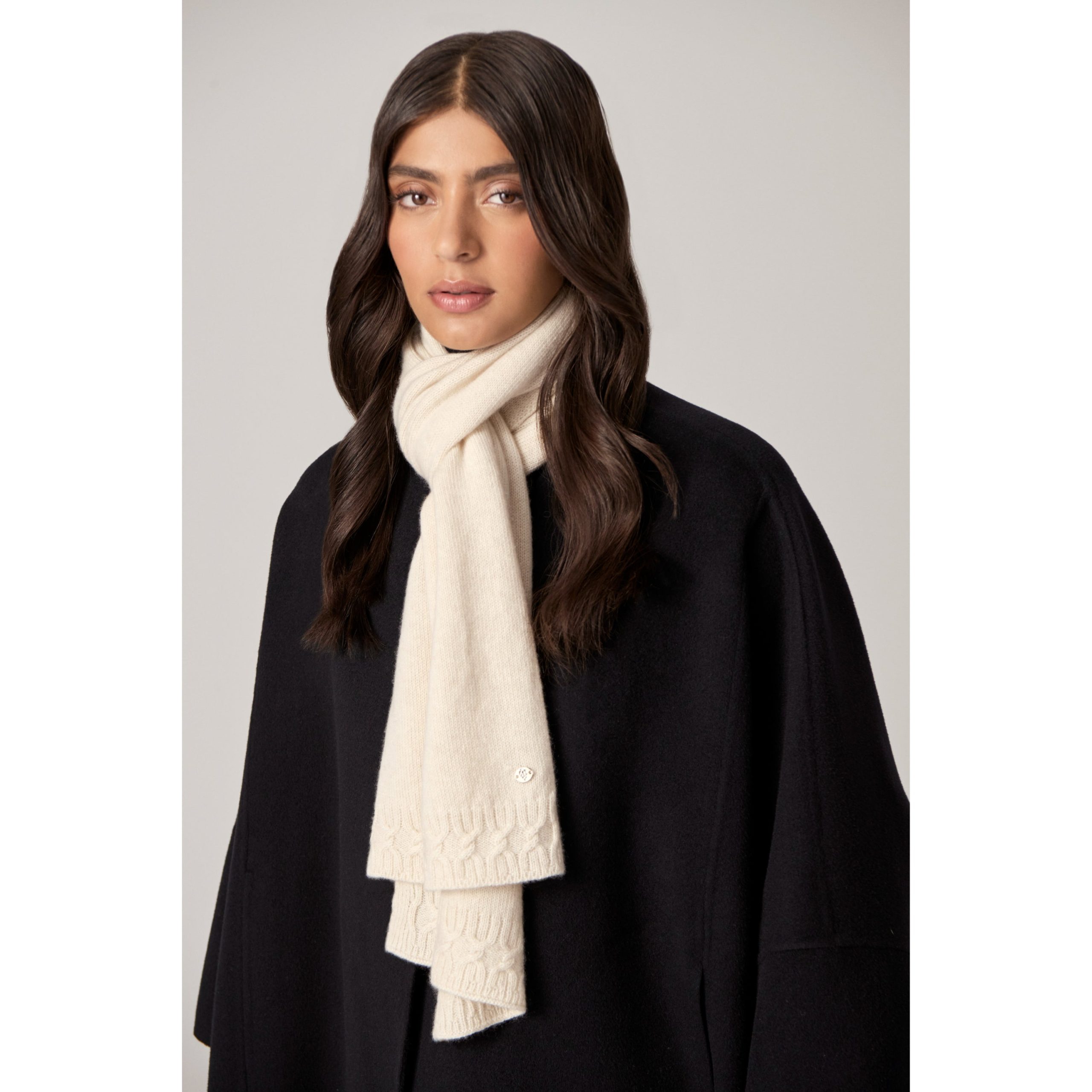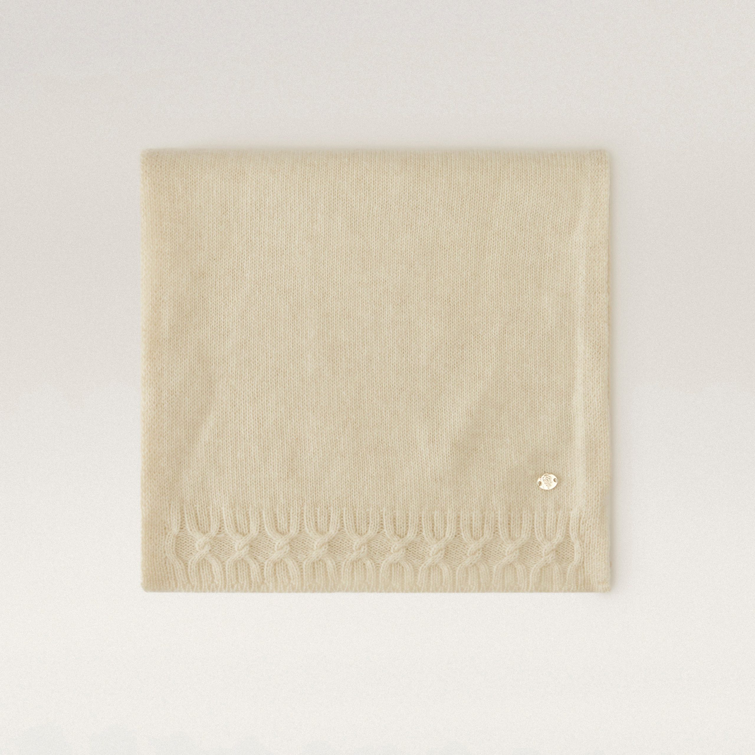 Stay warm in our Candine scarf crafted from 100% cashmere yarn certified by The Good Cashmere Standard. Boasting a classic knit design complemented by a refined cable border. Complete your winter look with the Annette cashmere beanie and Alma cashmere glove. Scarf Certified The Good Cashmere Standard 100% Cashmere Yarn Classic Knit with Cable Border
