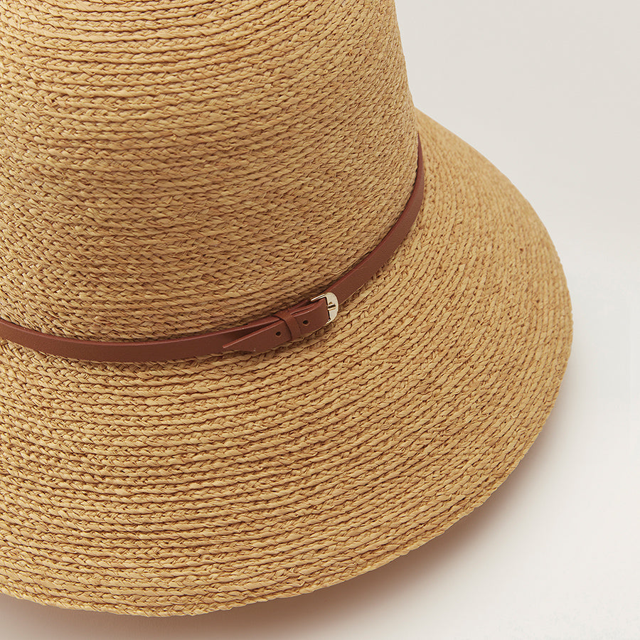Effortless style is innate with the Besa 9 hat. Handcrafted using new techniques that result in a lightweight rollable raffia braid, this style features a functional buckle fastening to keep it neatly rolled and stored. It’s also size adjustable and UPF 50+ certified, making it an all year-round hat essential for women. Deep Fitting Round Crown Short Brim Cloche 9cm Brim Leather Trim Functional Buckle Hardware to Secure When Rolled Sateen Elastic Size Adjustable Inner Band Rollable u0026amp; Packable UPF 50+