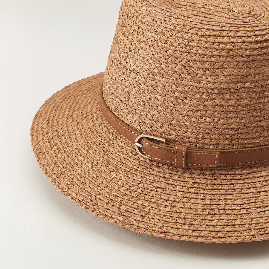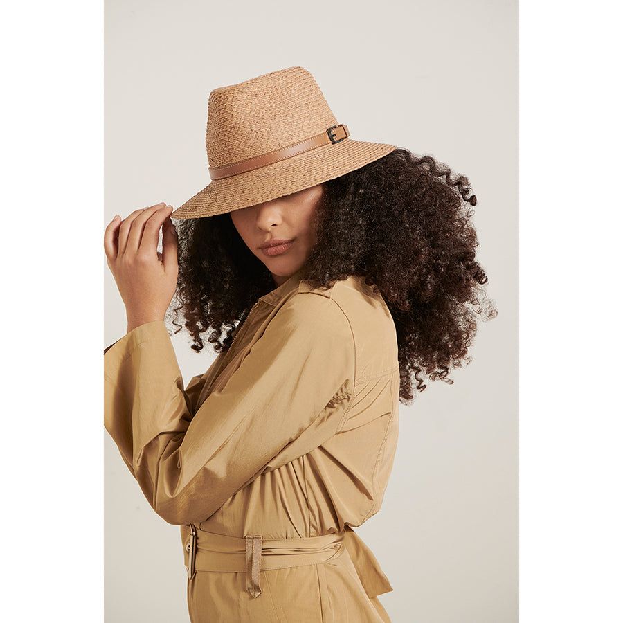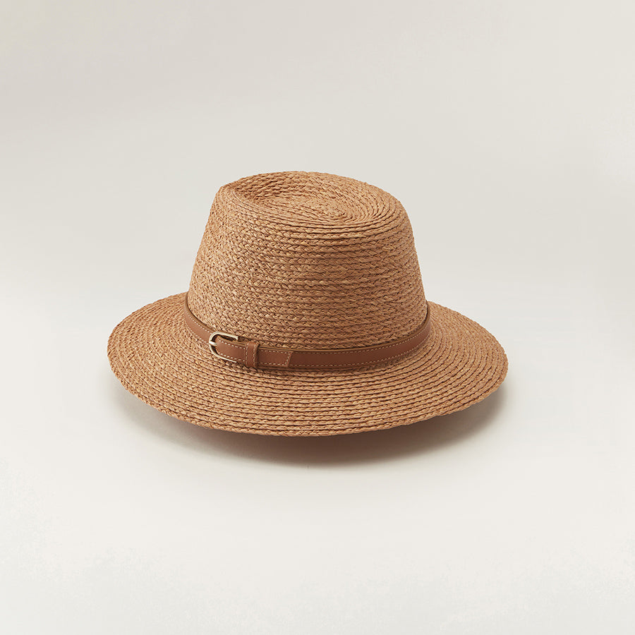 Hello, holiday mode! Billie is our new season general neutral fedora silhouette, crafted from classic 8mm raffia braid and featuring a sophisticated leather buckle trim. Made to be worn with your favourite summer outfits, this piece is destined to be your new go-to for those warm sunny days.Fedora with Gently Down Angled Brim6.5cm brimItalian Leather TrimGender Neutral StylingSize Adjustable Cotton InnerbandUPF 50+