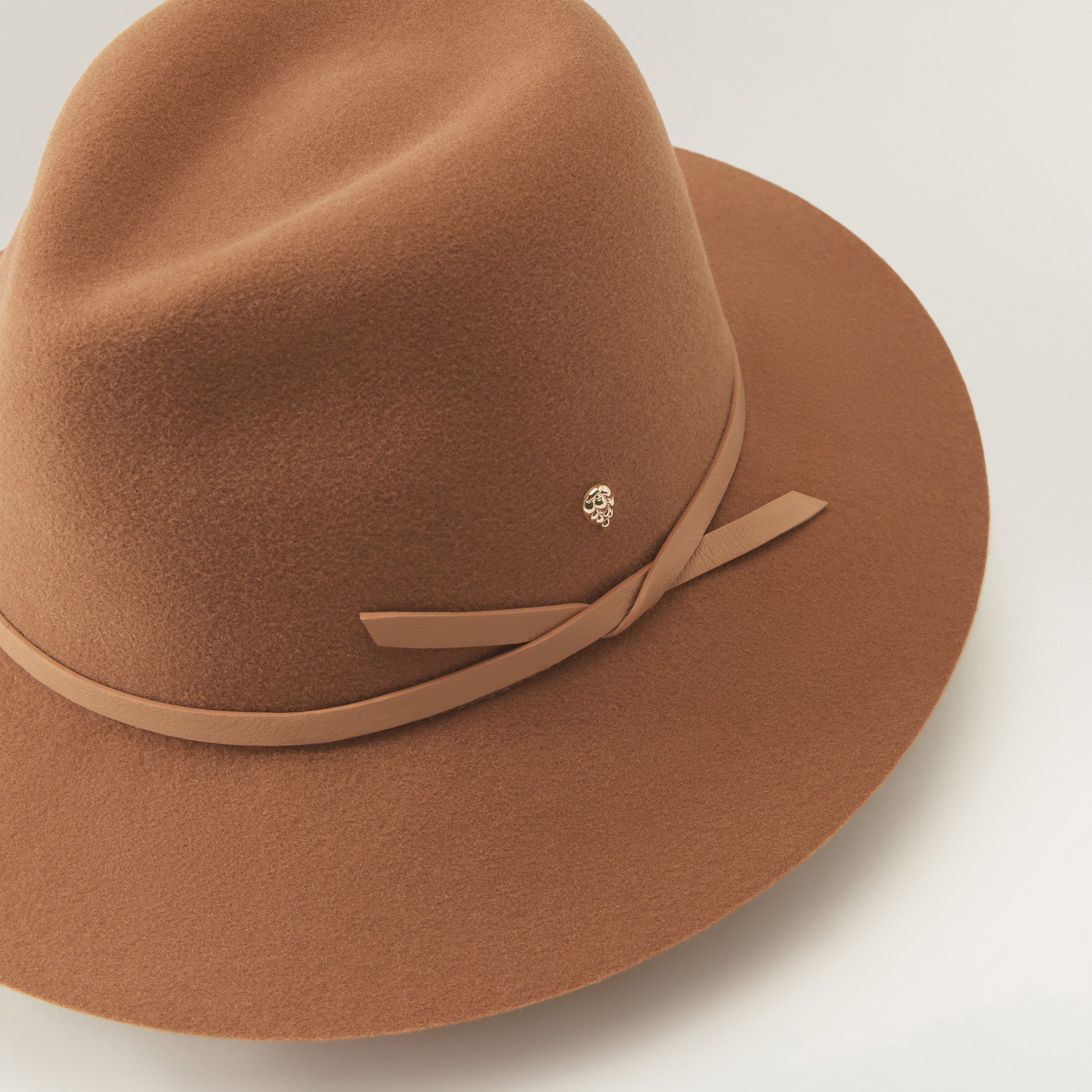The Carly fedora combines classic design with timeless craftspersonship. Crafted from an elegant boutique wool felt and finished with an LWG certified leather trim, the brim is the perfect length to shield you from the winter sun. Pair with matching cosy knits and longline coats for a sophisticated take on cool weather styling. Classic Fedora with Waved Brim100% Wool Felt9cm Crown Height at CF7cm BrimLWG Certified Italian Leather Trim with Wrapped DetailSize Adjustable Inner Band for Fit and Comfort