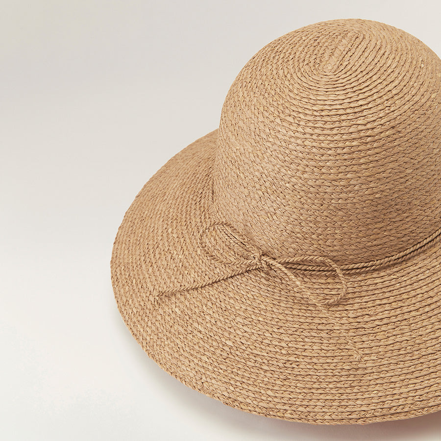 A modern taken on elegance, Delphina delivers minimal style at its best. Constructed from hand plaited raffia braid and taking up to three days to complete, this style is a timeless piece. Offering a classic round crown and down angled wide 10cm brim, it’s finished with a hand rolled raffia tie and signature seed insignia.Round CrownElegant Angled Brim10cm BrimHand Rolled Raffia StringSateen Elastic Size Adjustable Inner BandUPF 50+