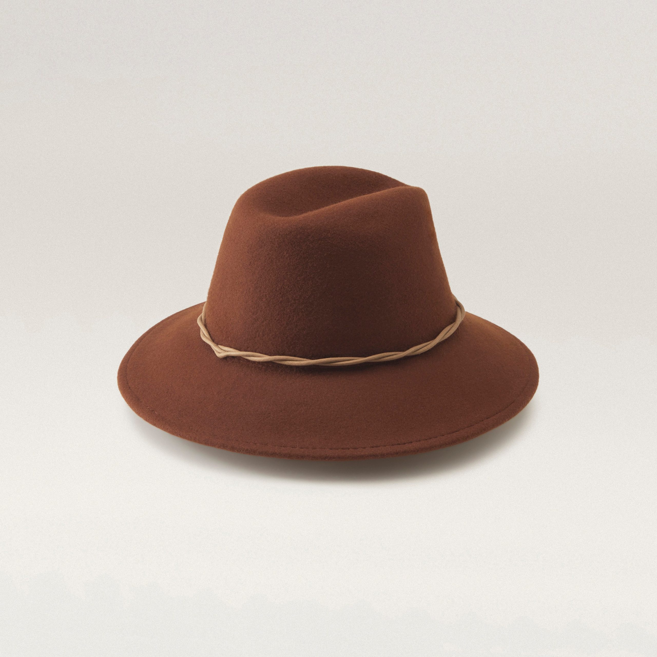 Embrace winter elegance with Eleonore, a Classic Fedora exquisitely crafted from 100% Merino wool felt, adorned with a refined twisted cotton cord trim. Classic Fedora 100% Merino Wool Felt 8cm Brim Length with Welted Edge 10cm Crown Height at Front Refined Cotton Cord Twisted Trim Soft Touch Size Adjustable Inner Band for Fit and Comfort UPF 50+