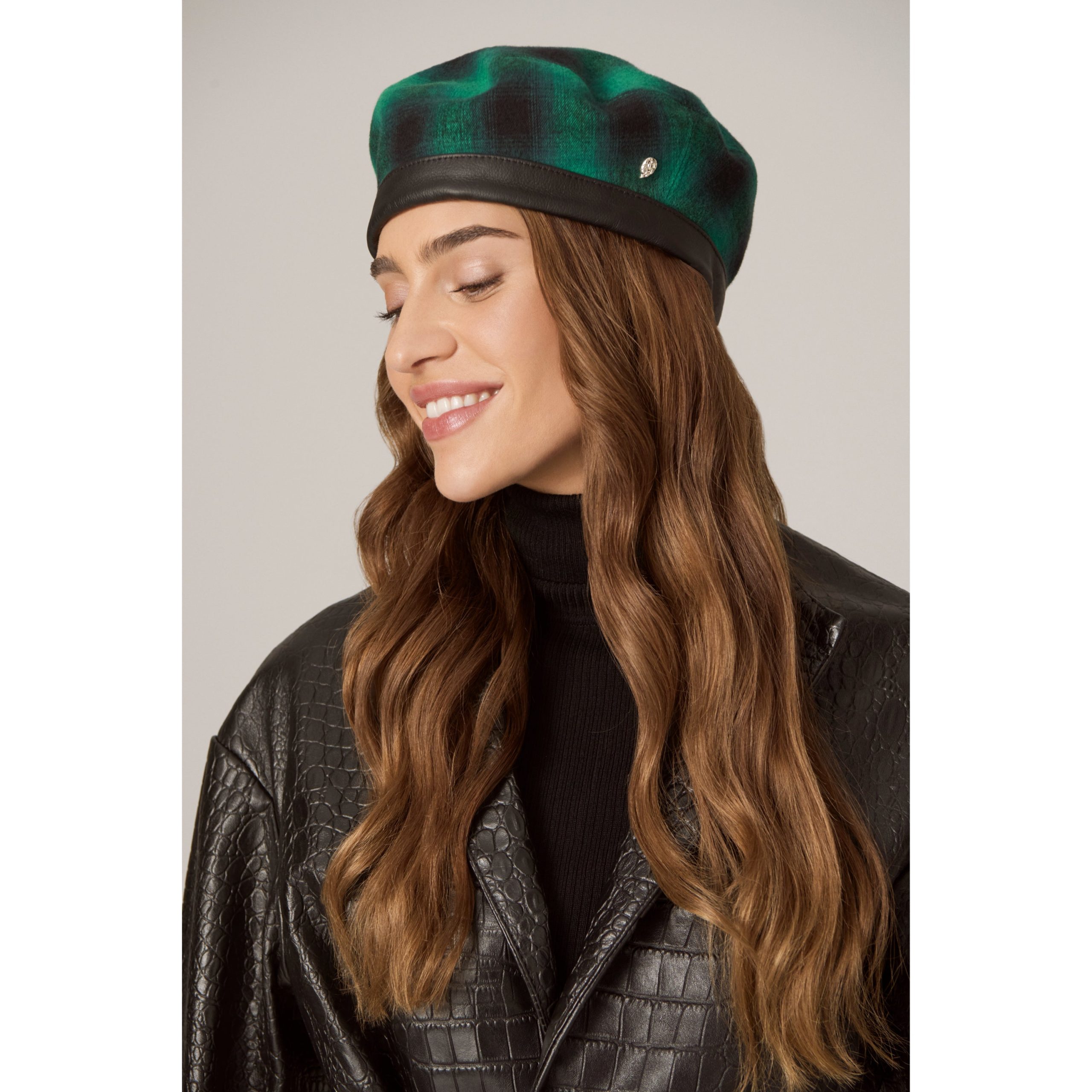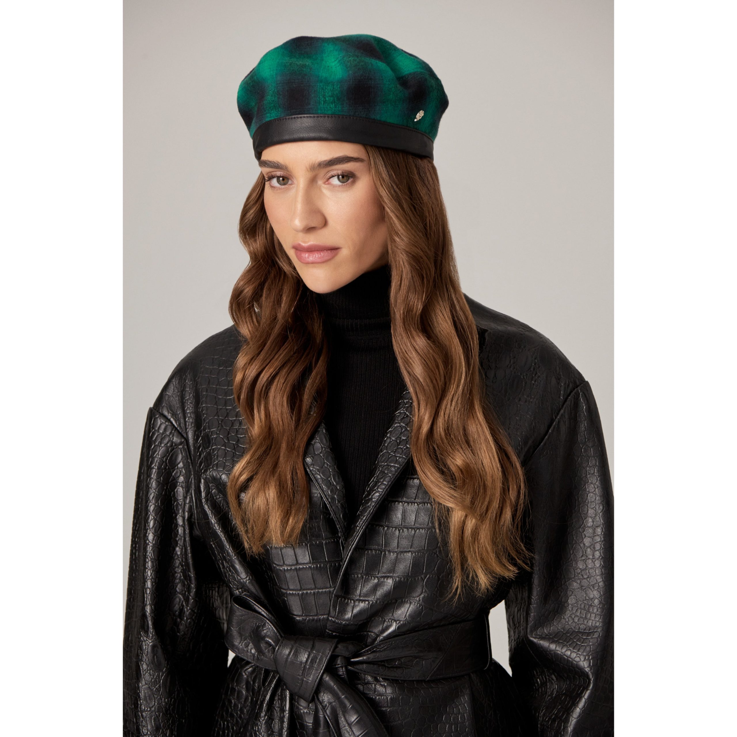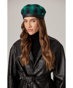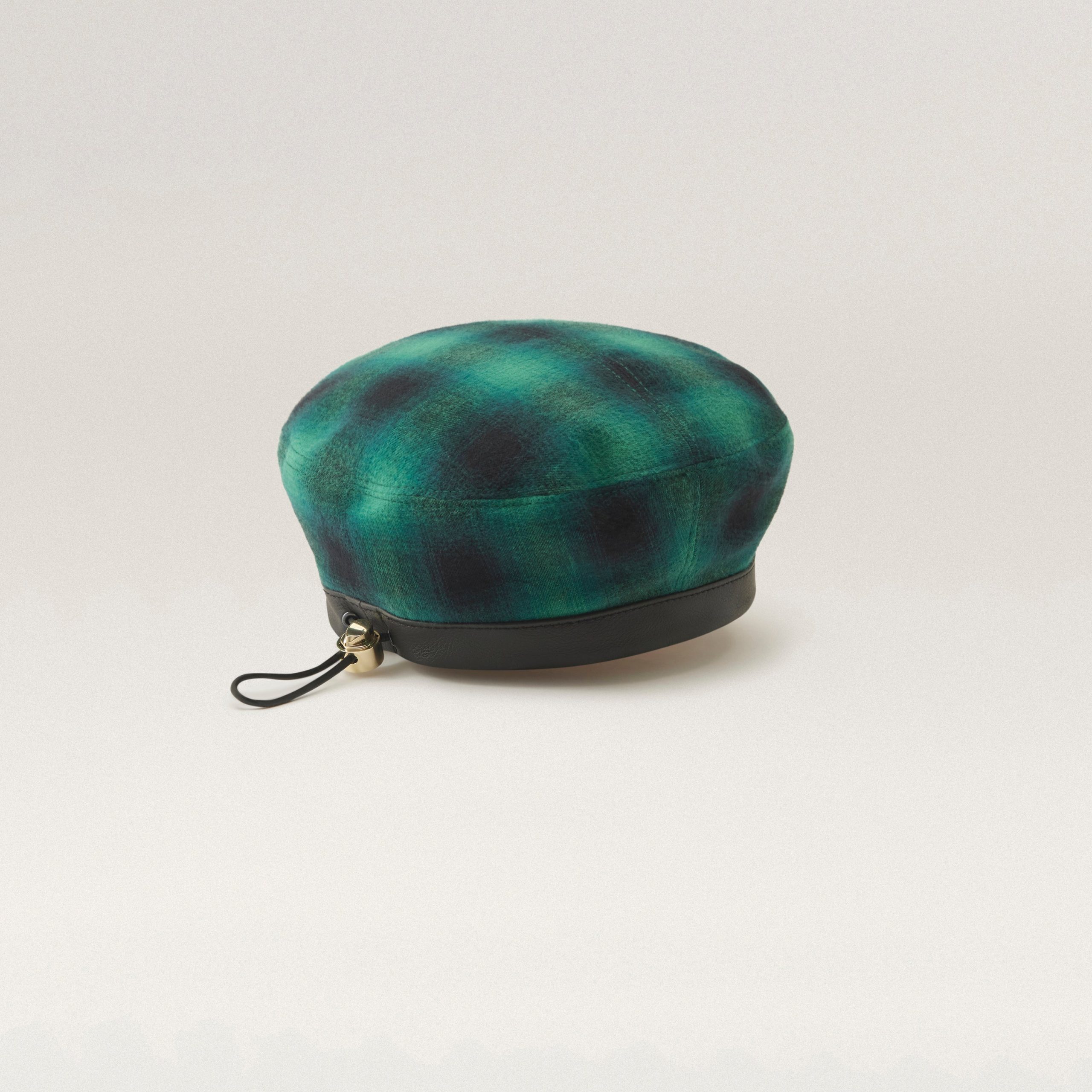 Crafted from Japanese cotton check fabric and Leather Working Group-certified leather, the Floriane beret offers chic winter styling.Beret Japanese Cotton Check Fabric with LWG Certified Soft Leather StandSize Adjustable Leather Band for Fit and Comfort Matching Leather Adjuster Features Signature SeedHardware Toggle at BackPin Dot Fitted Lining58cm Head Fit