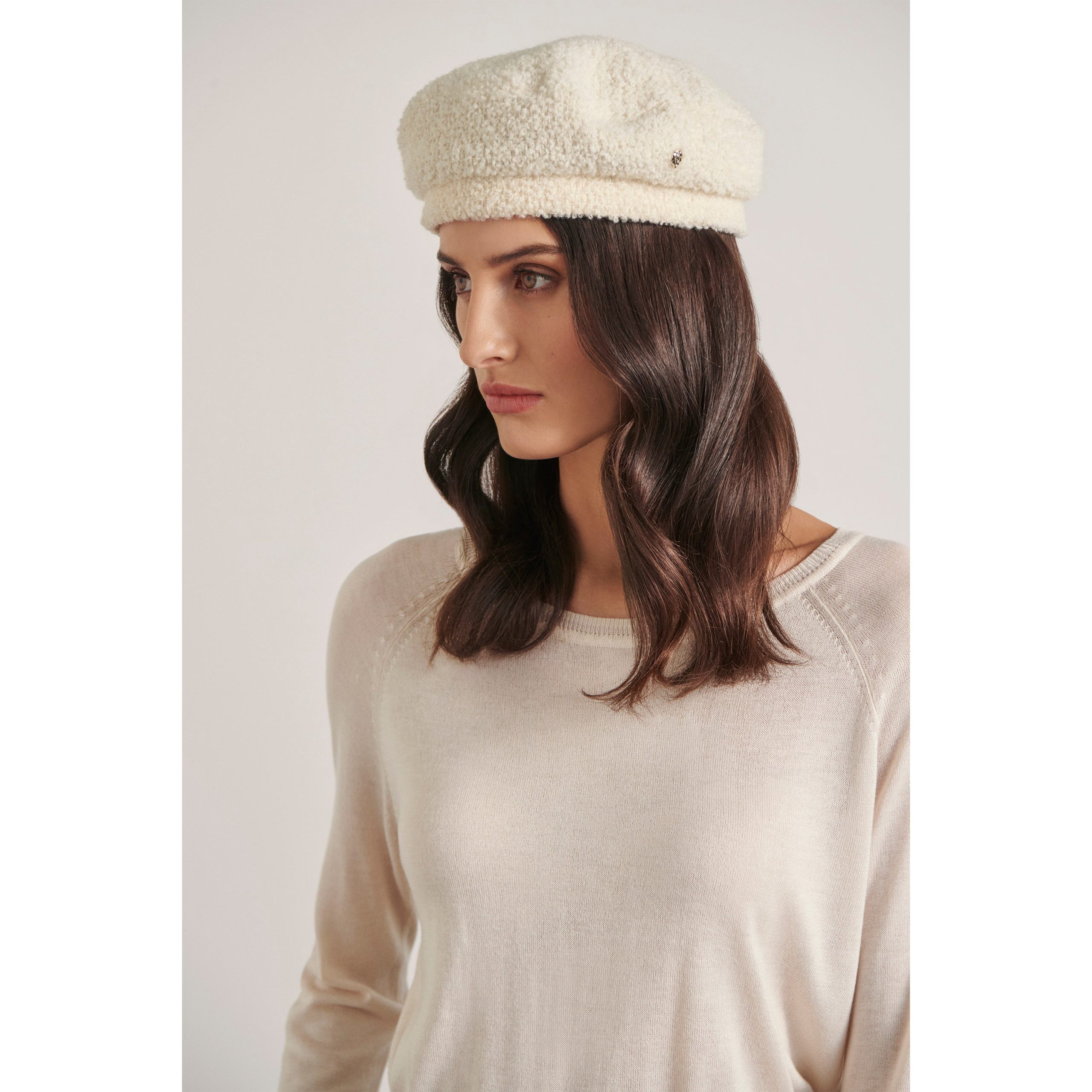 Unquestionably chic, the Hailie beret is the ultimate winter accessory. Crafted from a full-bodied Italian boucle wool fabric that is OEKO-TEX certified, and features a 100% Merino Wool lining ensuring warmth, breathability and longevity. Is there a more stylish way to finish a winter outfit than with a beret? Classic Beret with StandItalian Boucle Oeko-Tex Certified Wool Blend FabricSize Adjustable Stand Channel for FitSoft Merino Wool Lining