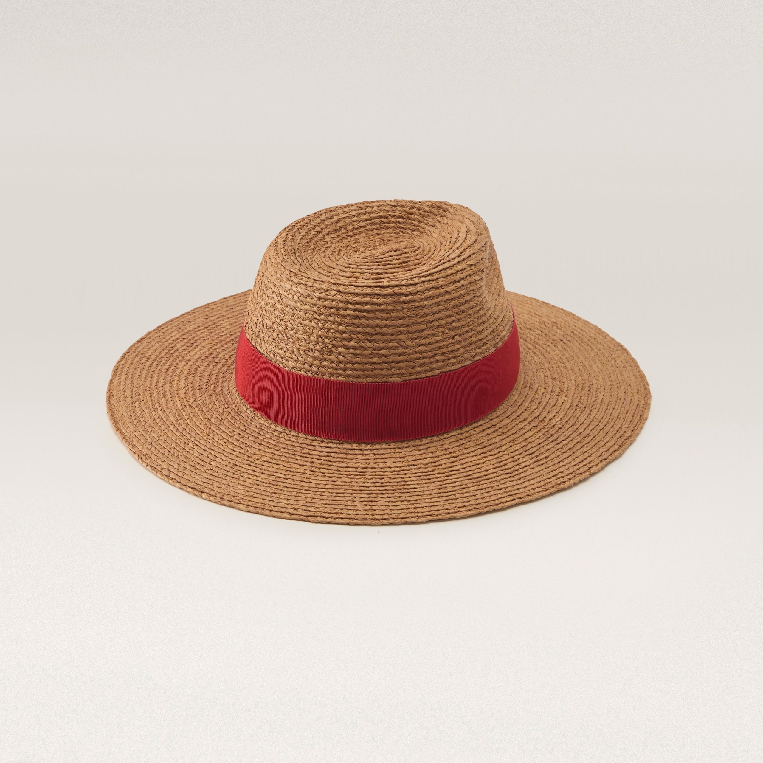 Jenna Wide Brim Fedora features a stylish flat brim and is hand-crafted from raffia braid, offering a sophisticated look. Accented with a chic bow detail, it includes a size-adjustable inner band for comfort and provides UPF 50+ protection for sunny days. Wide Brim Fedora Hand Crafted Raffia Braid 9cm Flat Brim Italian Grosgrain Ribbon with FSC Certified Viscose Trim with Bow Detail Size Adjustable Innerband for Fit and Comfort UPF 50+