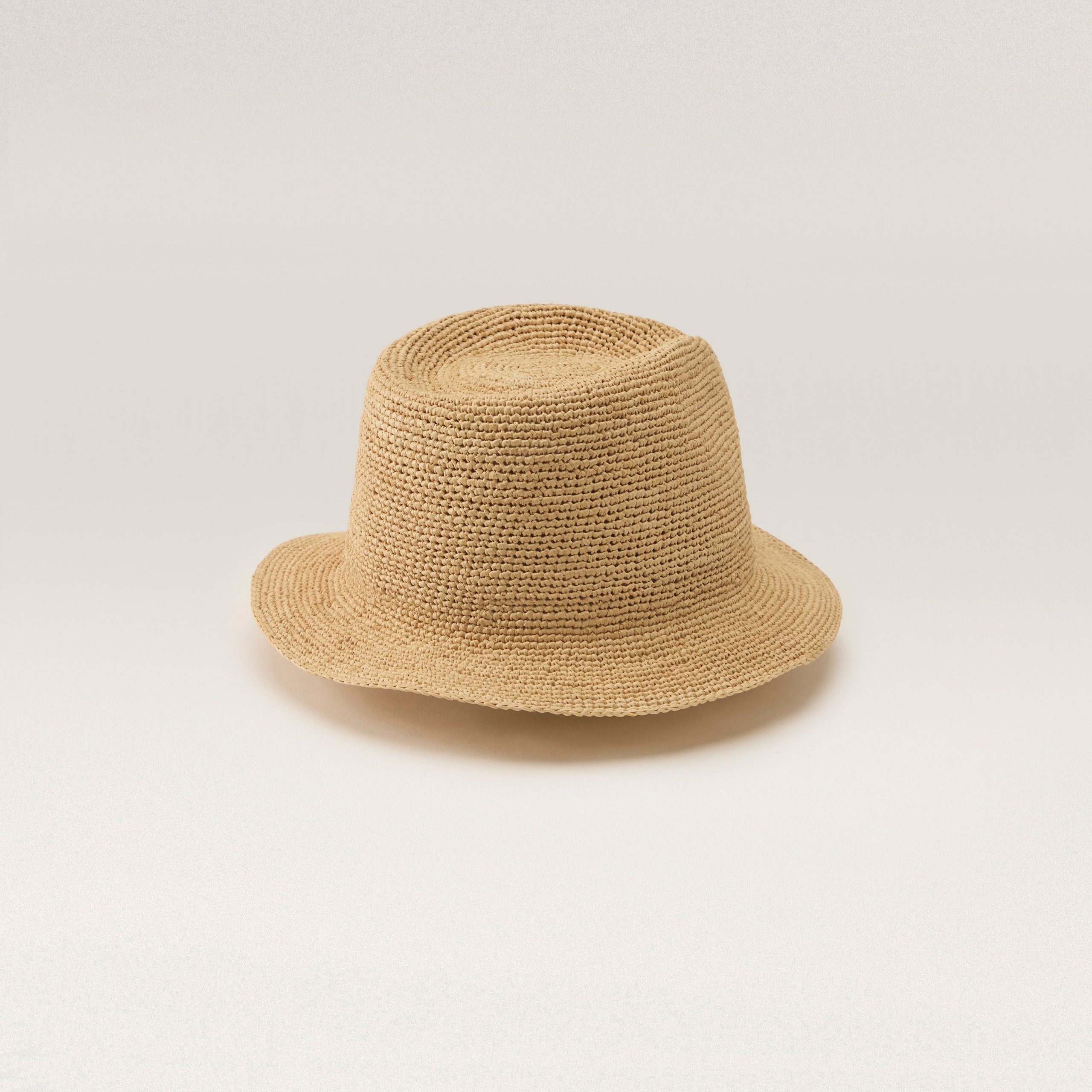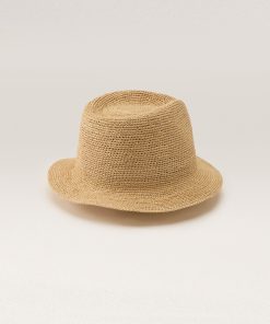 Jordan Classic Fedora showcases a sleek straight/flat brim, expertly hand-crafted from raffia crochet. With a size-adjustable inner band for a comfortable fit, this stylish hat is also packable, making it a versatile accessory for any occasion Classic Fedora Hand Crafted Raffia Crochet 6cm Flat Brim Size Adjustable Innerband for Fit and Comfort Packable