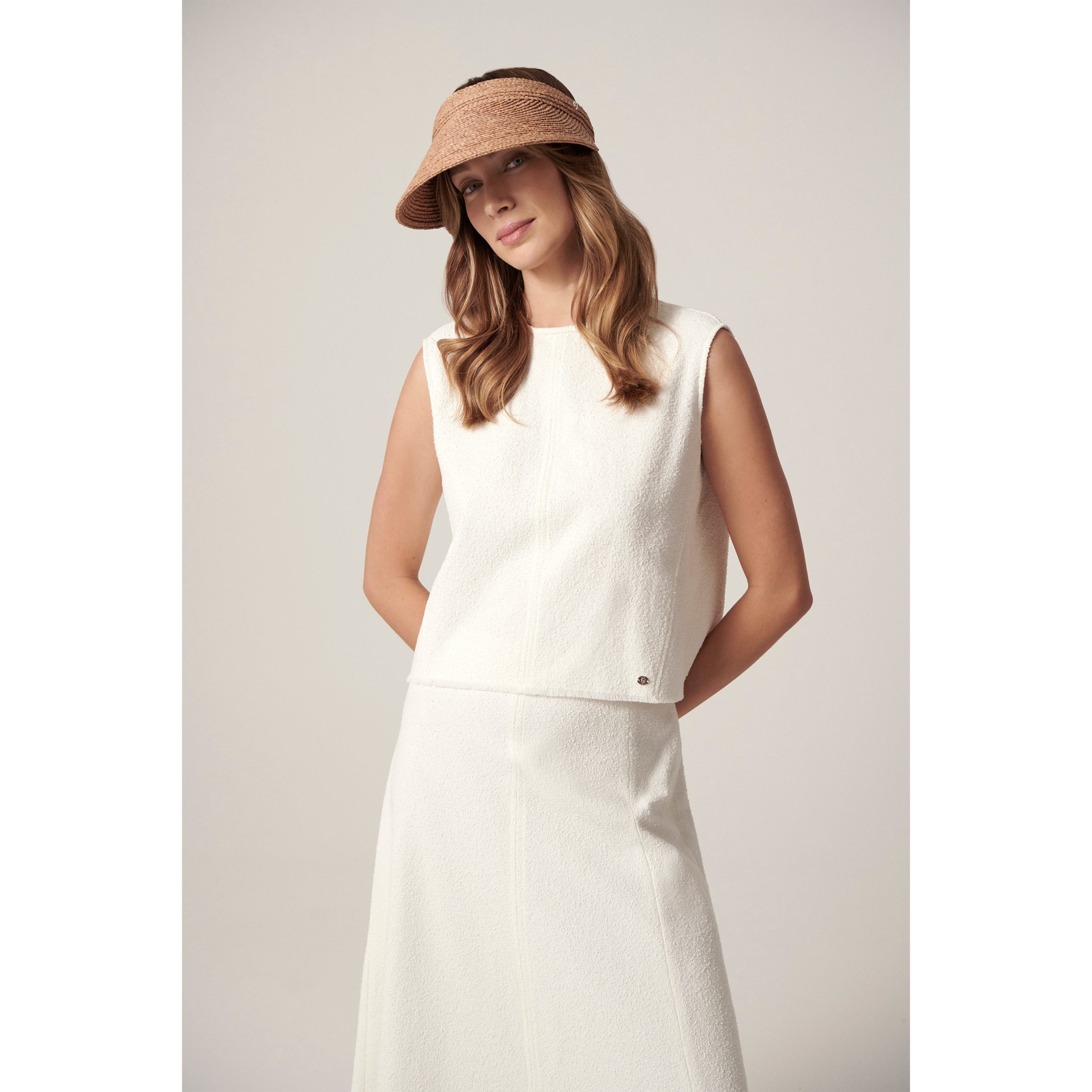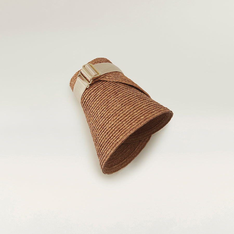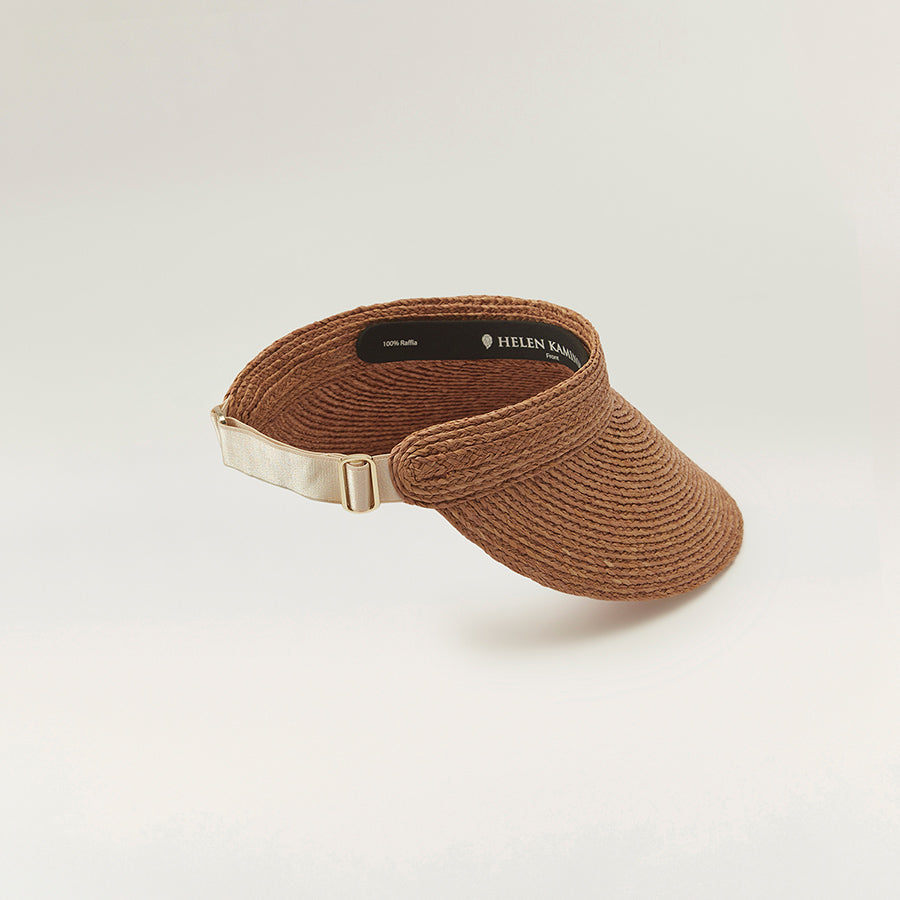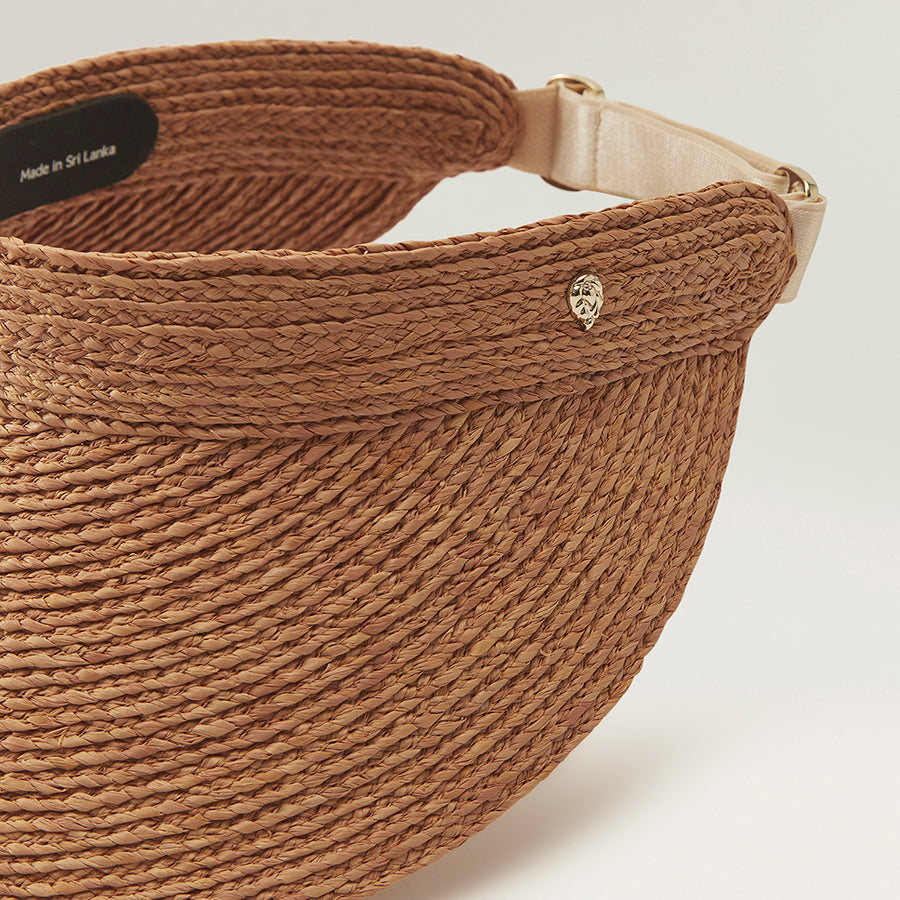 Delightful all year round, Kirsten is crafted from sustainably harvested, hand-braided Madagascan raffia. The style features a 12cm peak, inner neoprene band and size adjustable elastic fastening. Rollable and designed with a securing hook, Kirsten makes for the perfect casual off-duty travel or daily walk companion. Pull-on Rollable Visor Wide Peak 12cm Peak Hook Hardware for Rollability Sateen Elastic Size Adjustable Outer Band Neoprene Inner Band Rollable u0026amp; Packable Style Sold With Printed Logo Cloth Bag