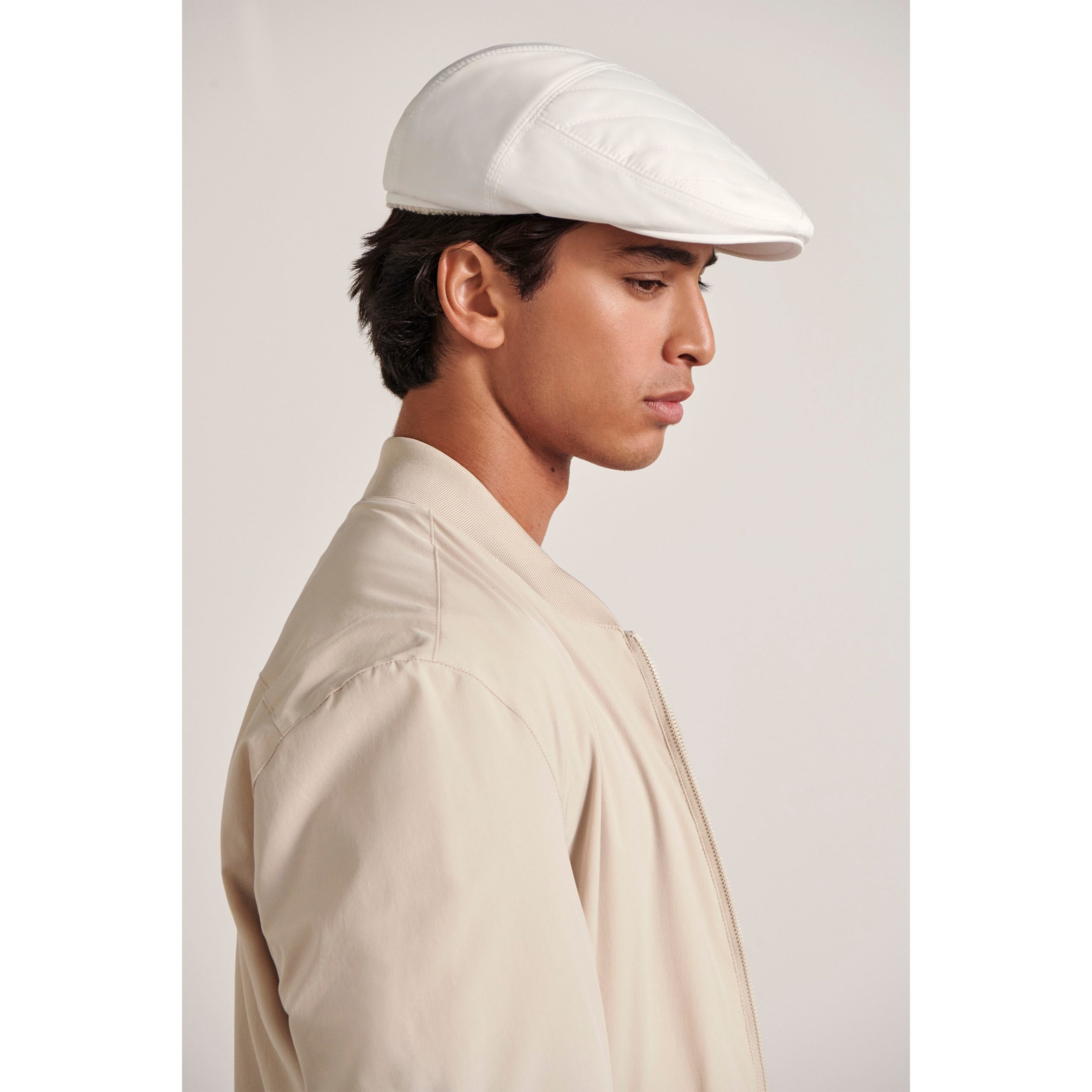 Taking inspiration from the soft and cosy feeling of winter dressing, the Lynton flat cap is the perfect accessory for both the city slicker and adventure seeker. Crafted from a water-resistant recycled polyester fabric, this piece is lined with a rich OEKO-TEK certified teddy boucle wool for added warmth and comfort. Flat Cap Quilted Recycled Polyester with GRS certification5cm PeakQuilted Front Panel in Chevron Pattern Gender Neutral StylingSize Adjustable Cotton Innerband for Fit and ComfortItalian Boucle Oeko-Tex Certified Wool Blend Lining