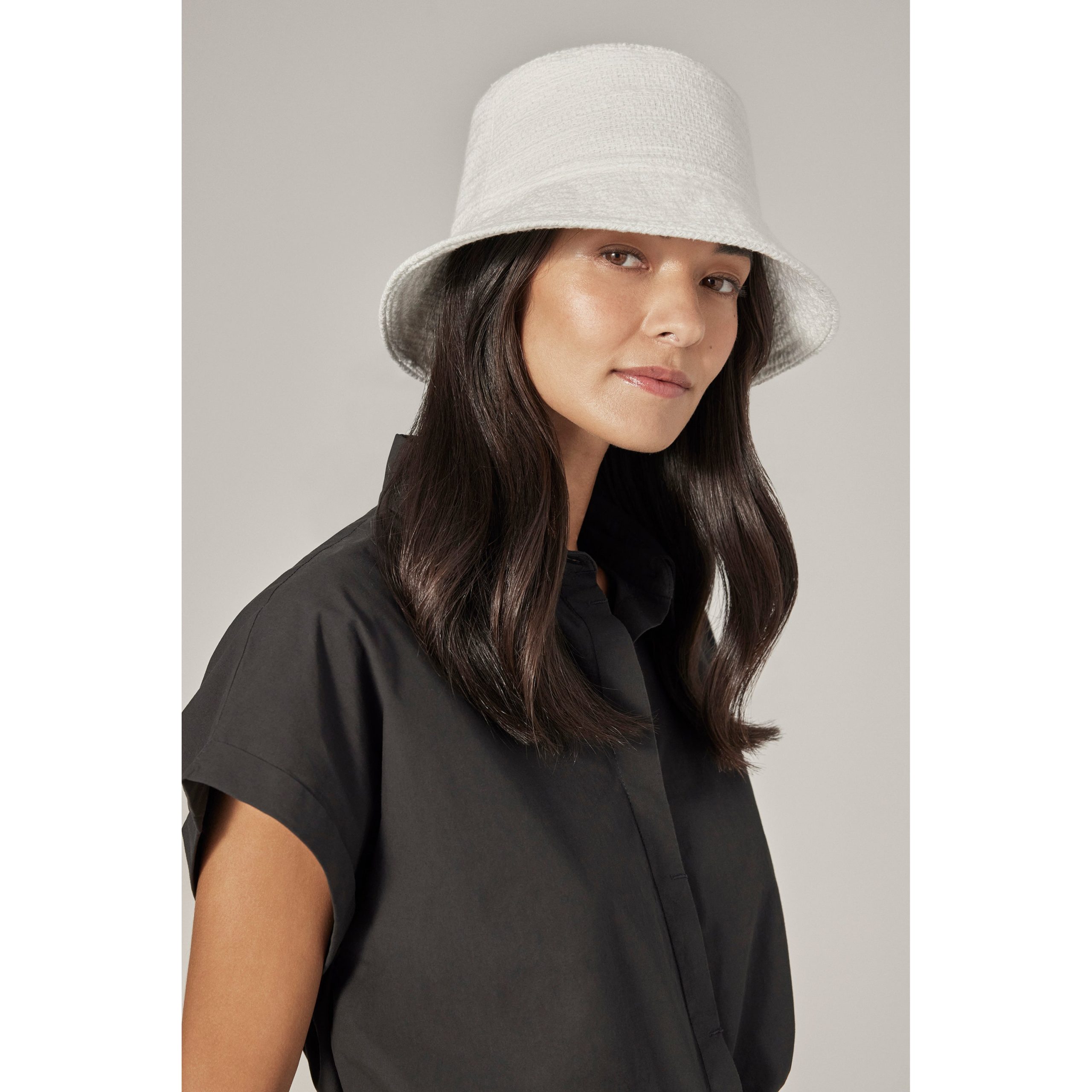 The Namaka bucket hat brings together timeless style and thoughtful craftsmanship. Made from a cotton blend boucle and piping detail along the edge, adding a refined finish. Designed for comfort, the hat includes a size-adjustable lining channel and a lightweight cotton-fitted lining. Classic Bucket Cotton Blend Boucle 6.5cm Brim Topstitching Detail on Brim with Piping Detail on Brim Edge Size Adjustable Lining Channel for Fit Lightweight Cotton Fitted Lining UPF 50+