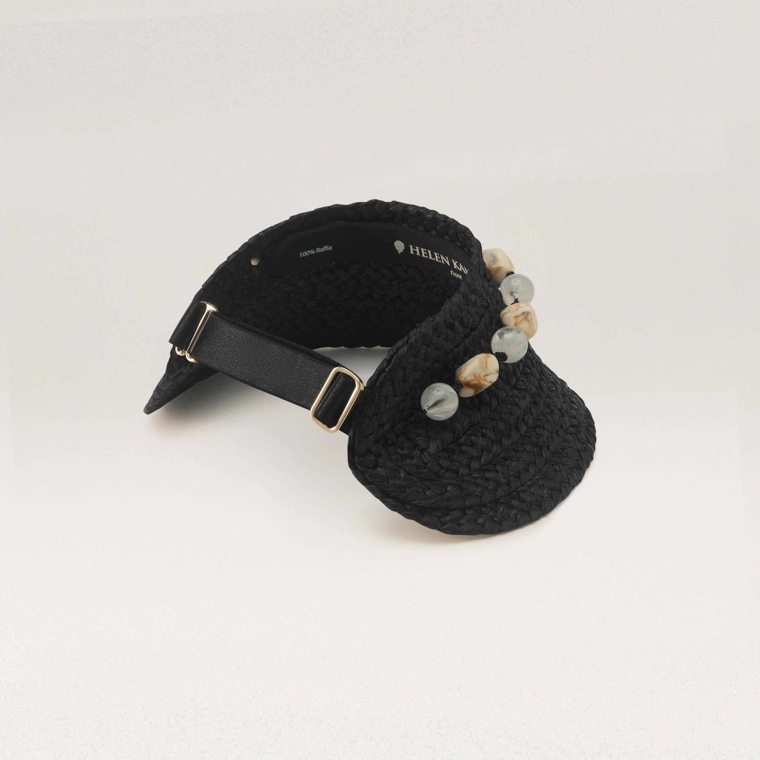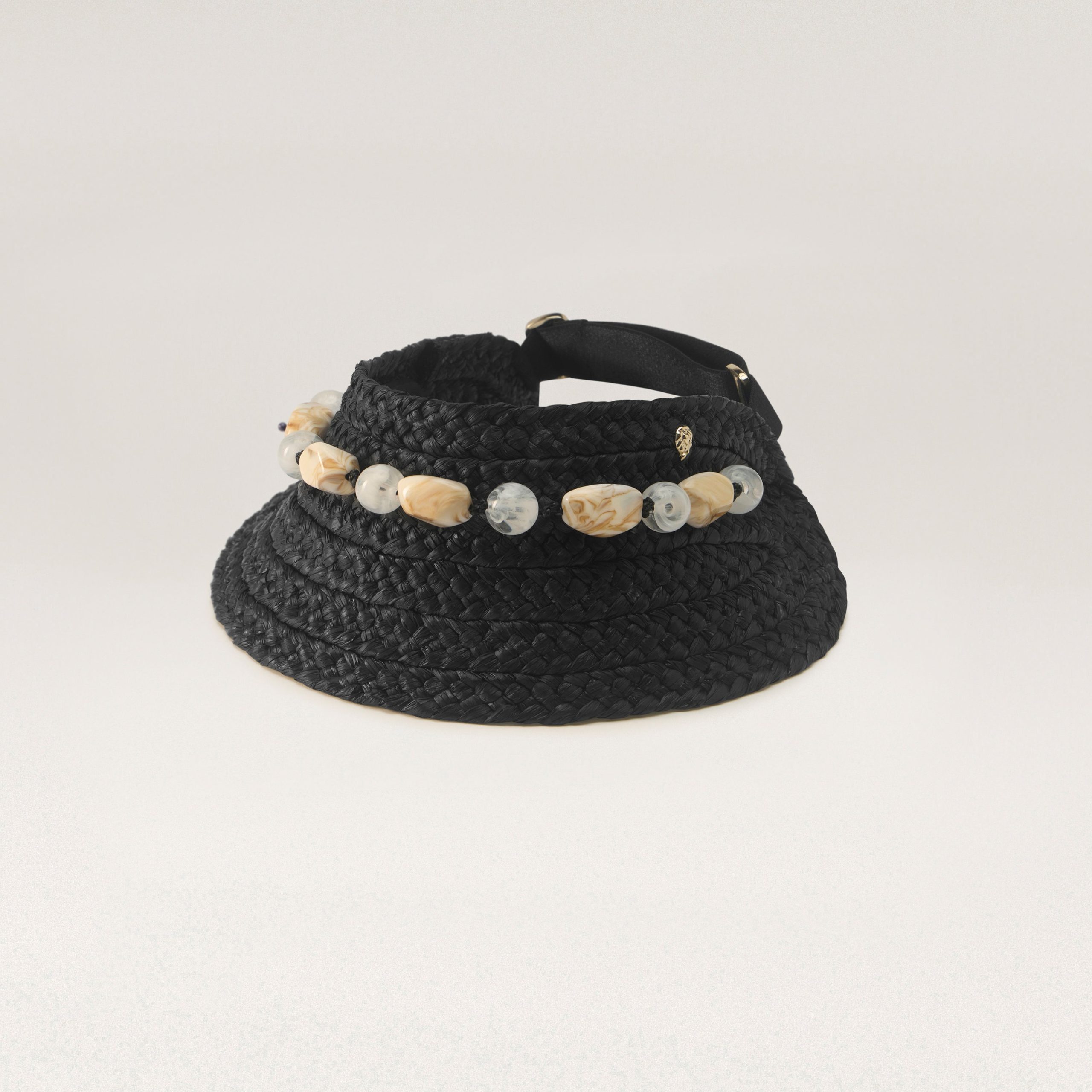 Nyla Classic Visor is hand-crafted from raffia wide braid, offering both style and functionality. Featuring a 7.5cm brim and a standout hand-rolled raffia string with resin pebble trim, this visor is also rollable and packable, making it a perfect travel companion. Classic 3/4 Brim Visor Hand Crafted Raffia Wide Braid 7.5cm Brim Hand Rolled Raffia String with Resin Pebble Trim Logo Neoprene Innerband for Comfort Size Adjustable Elastic Back Strap with Slider Hardware and Hook Closure Rollable and Packable