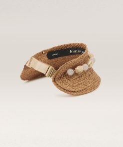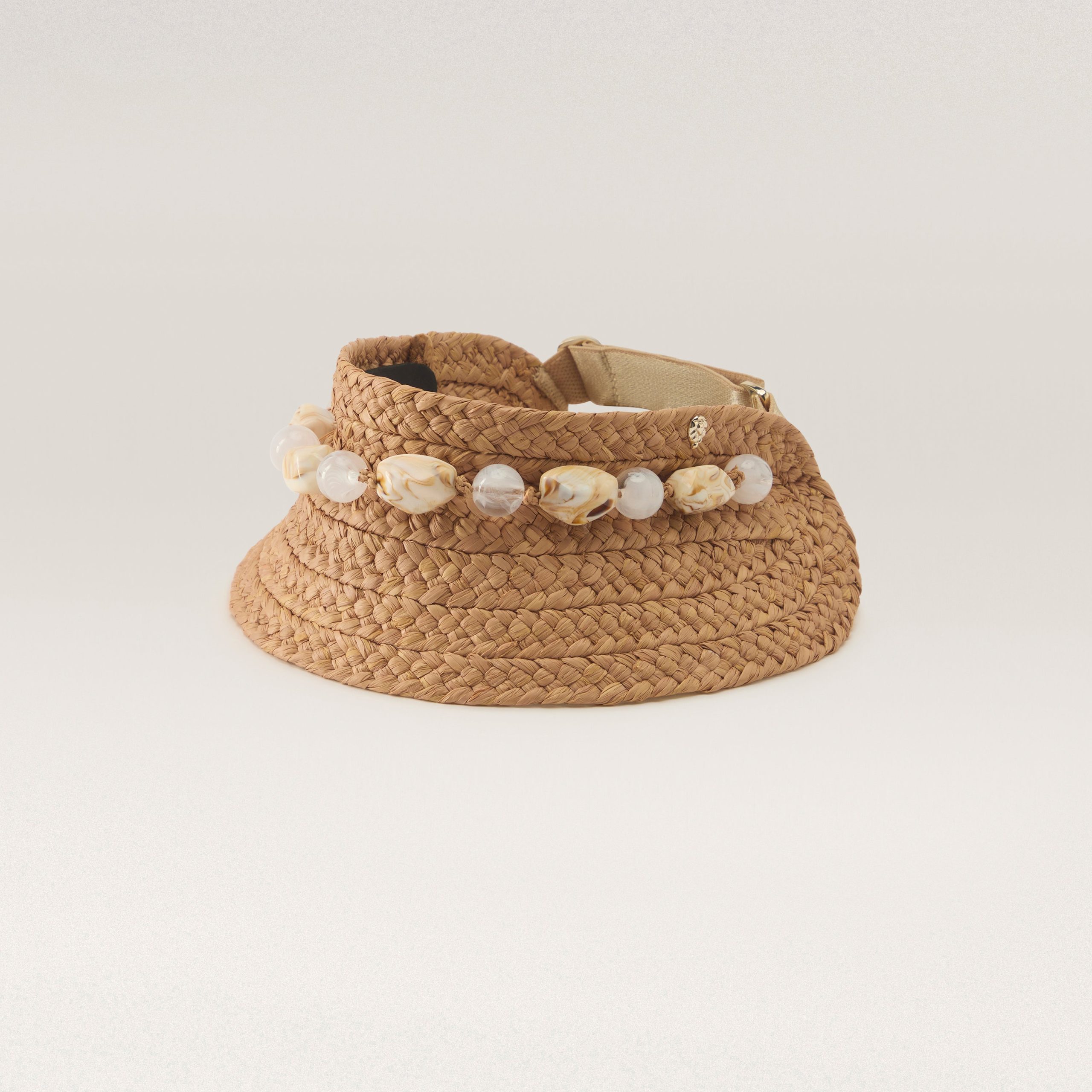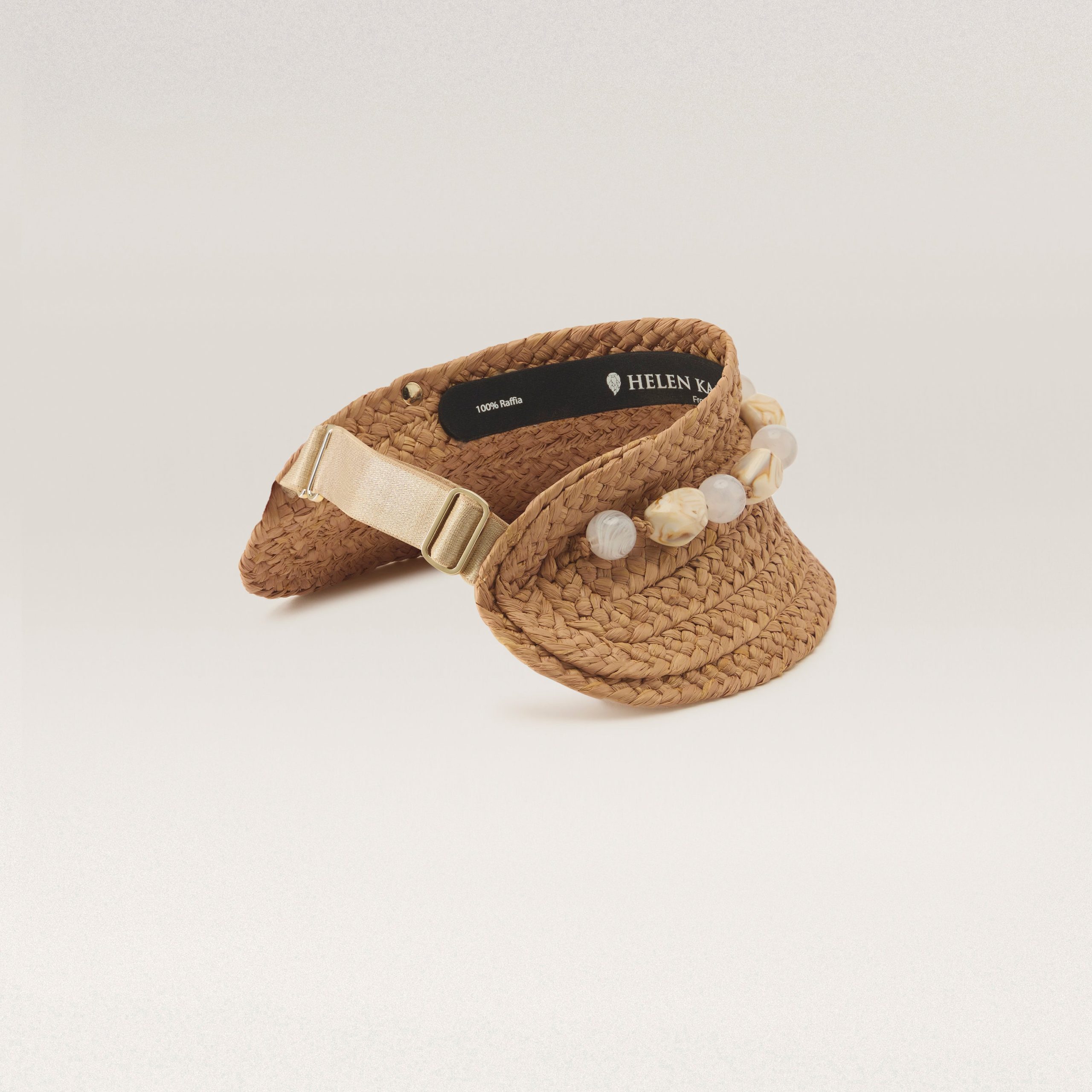 Nyla Classic Visor is hand-crafted from raffia wide braid, offering both style and functionality. Featuring a 7.5cm brim and a standout hand-rolled raffia string with resin pebble trim, this visor is also rollable and packable, making it a perfect travel companion. Classic 3/4 Brim Visor Hand Crafted Raffia Wide Braid 7.5cm Brim Hand Rolled Raffia String with Resin Pebble Trim Logo Neoprene Innerband for Comfort Size Adjustable Elastic Back Strap with Slider Hardware and Hook Closure Rollable and Packable