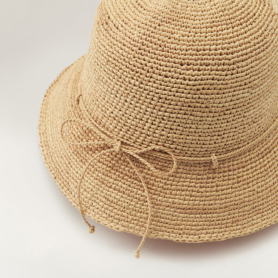 Your new season staple. Rosie features a shallow crown cloche and dainty hand rolled raffia string for size adjusting. This style is handcrafted from the finest sustainably harvested Madagascan raffia making it last for seasons to come. Rollable Crochet Cloch 6cm Brim Hand Rolled Raffia String for Size Adjustment Neoprene Inner Band Rollable u0026amp; Packable