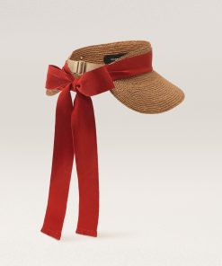 Cheeky and sophisticated brings Sabina. A new season visor that is handcrafted using 100% Madagascan raffia, featuring a directional wide brim and beautifully detailed wide Italian Grosgrain ribbon. A versatile silhouette with a perfectly feminine feel. Classic Sun Visor 9.5cm Peak Italian Grosgrain Ribbon Trim Tied in Bow Hook Hardware for Attaching to Bag Neoprene Innerband