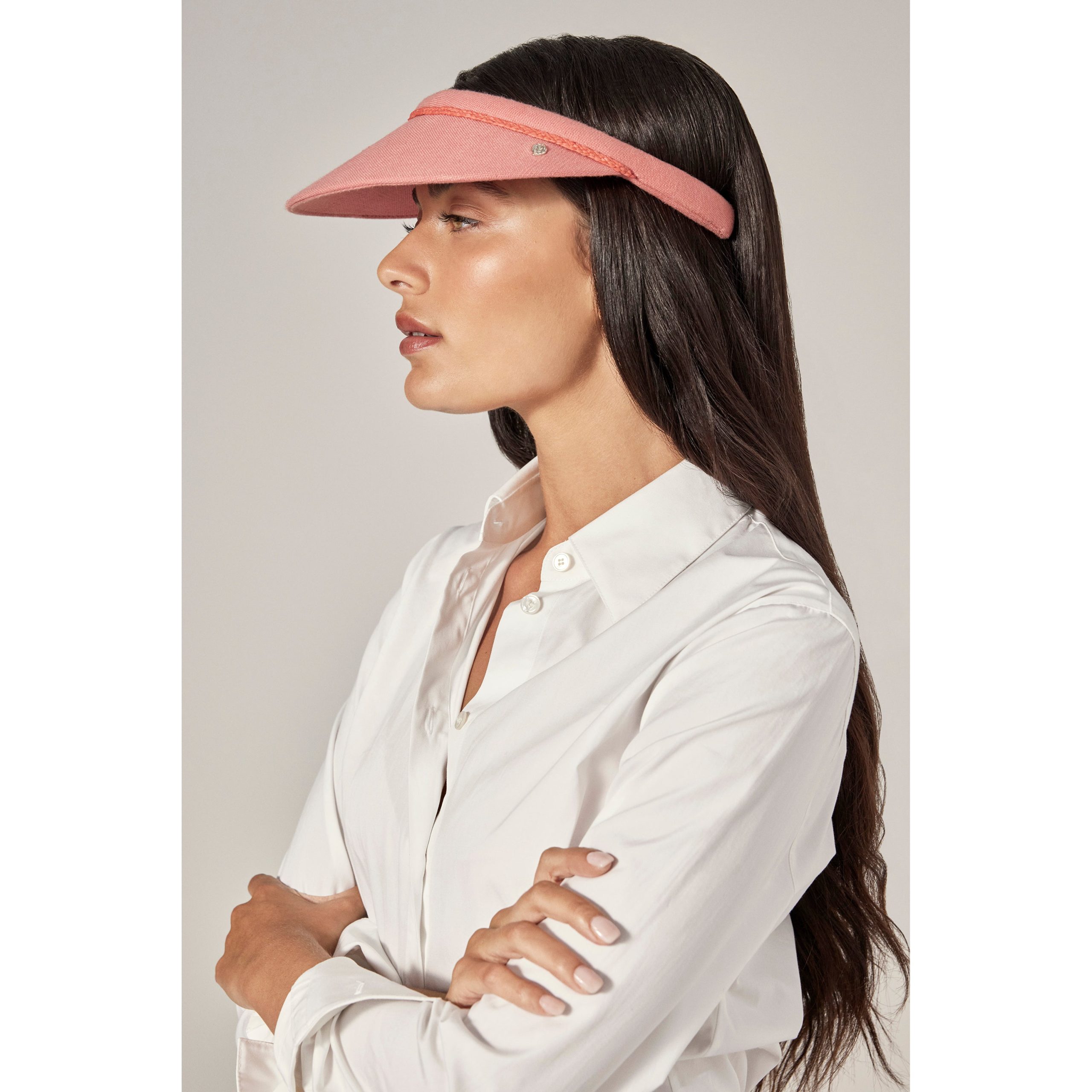 Sisira Visor is crafted from hand-spun and hand-woven cotton fabric, showcasing unique natural irregularities for added character. With a 10cm peak and based on our signature Bianca visor shape, it features a hand-crafted raffia braid trim, offering a simple yet elegant design perfect for outdoor sports, thanks to its breathable cotton fabric. Classic Slide-on Visor Hand Spun and Hand Woven Cotton Fabric with Unique and Natural Irregularities 10cm Peak Based on Our Signature Bianca Visor Shape Hand Crafted Raffia Braid Trim