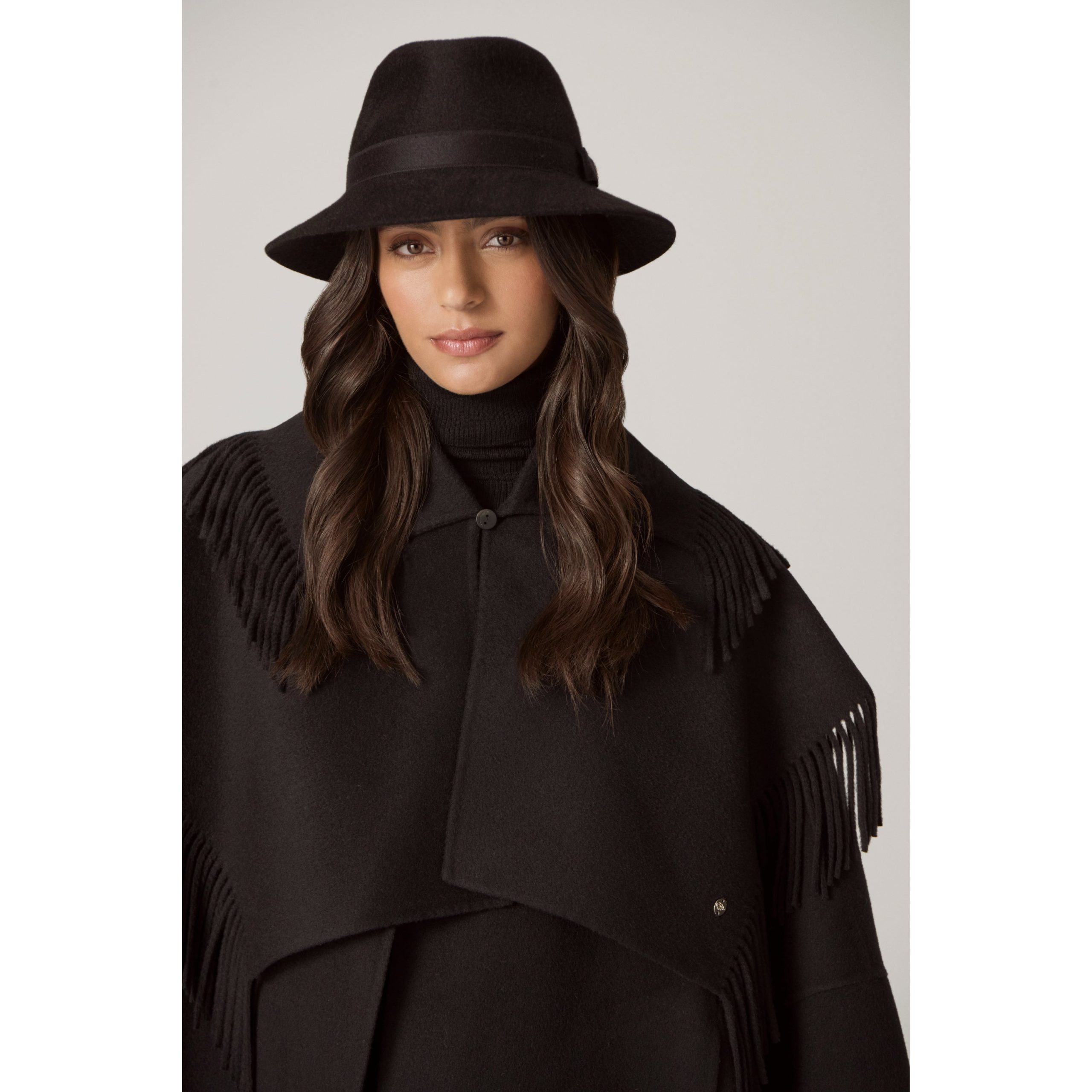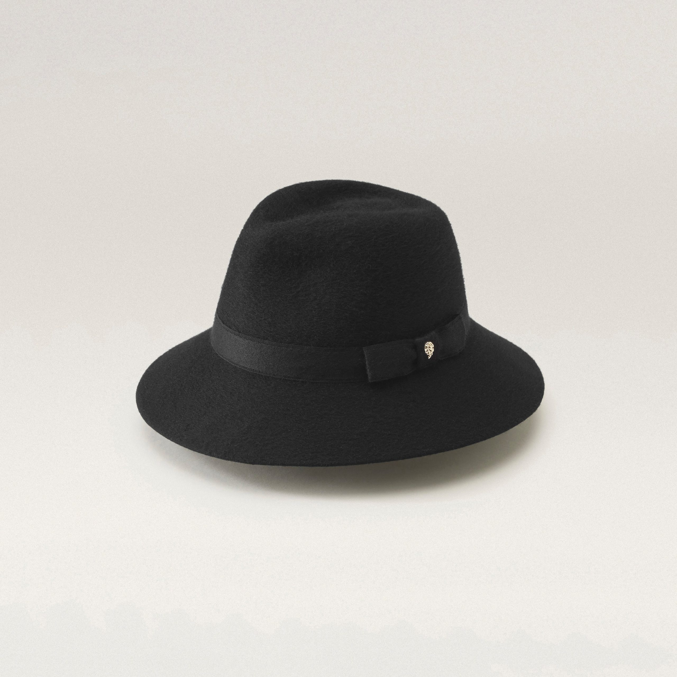 Fashioned from the finest pure cashmere satin felt, Solene embodies sophistication. Adorned with a 100% Italian wool ribbon trim featuring an elegant side bow detail, each Solene hat is a testament to exquisite taste and refinement. For unparalleled comfort, it comes equipped with a soft-touch size-adjustable inner band, ensuring a snug fit for every wearer.Classic Fedora 100% Cashmere Wool FeltCrown Height 9cm at Front7cm Brim100% Italian Wool Ribbon Trim with Side Bow DetailSoft Touch Size Adjustable Innerband for Fit and ComfortMade in Spain