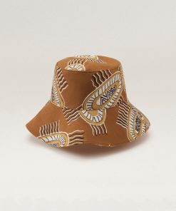 In partnership with Bábbarra Designs, artist Raylene Bonson has created a unique print depicting Marebu. The design comes from her mother’s side and is a special Kuninjku story. A Marebu is a handwoven mat made of Pandanus, a palm-like tree, and often coloured with natural dyes. It is an important multi use item serving practical and ceremonial purposes. Each length of fabric has been screen printed by hand in Melbourne, Australia. Bábbarra Designs is Bábbarra Women’s Centre’s internationally renowned textile studio based in Arnhem land, Australia. Marebu © Raylene Bonson Licensed by Copyright Agency Medium Brim Bucket Printed Linen Artworks by Belinda Kernan ‘Freshwater Billabong’ and Raylene Bonson ‘Marebu’ from Bábbarra Women’s Centre Arnhem Land, Australia 9cm Brim Size Adjustable Lining Channel for Fit Lightweight Cotton Lining UPF 50+