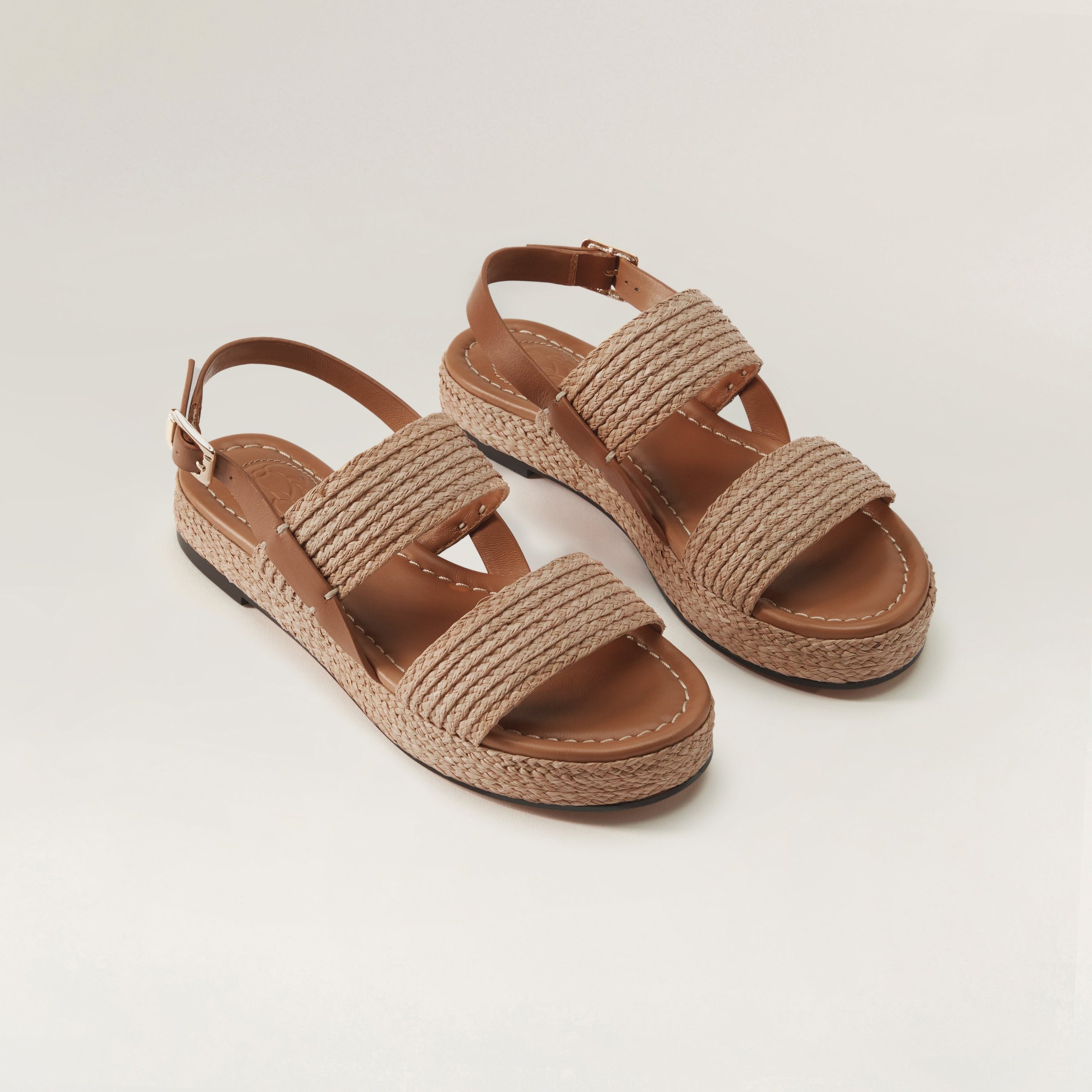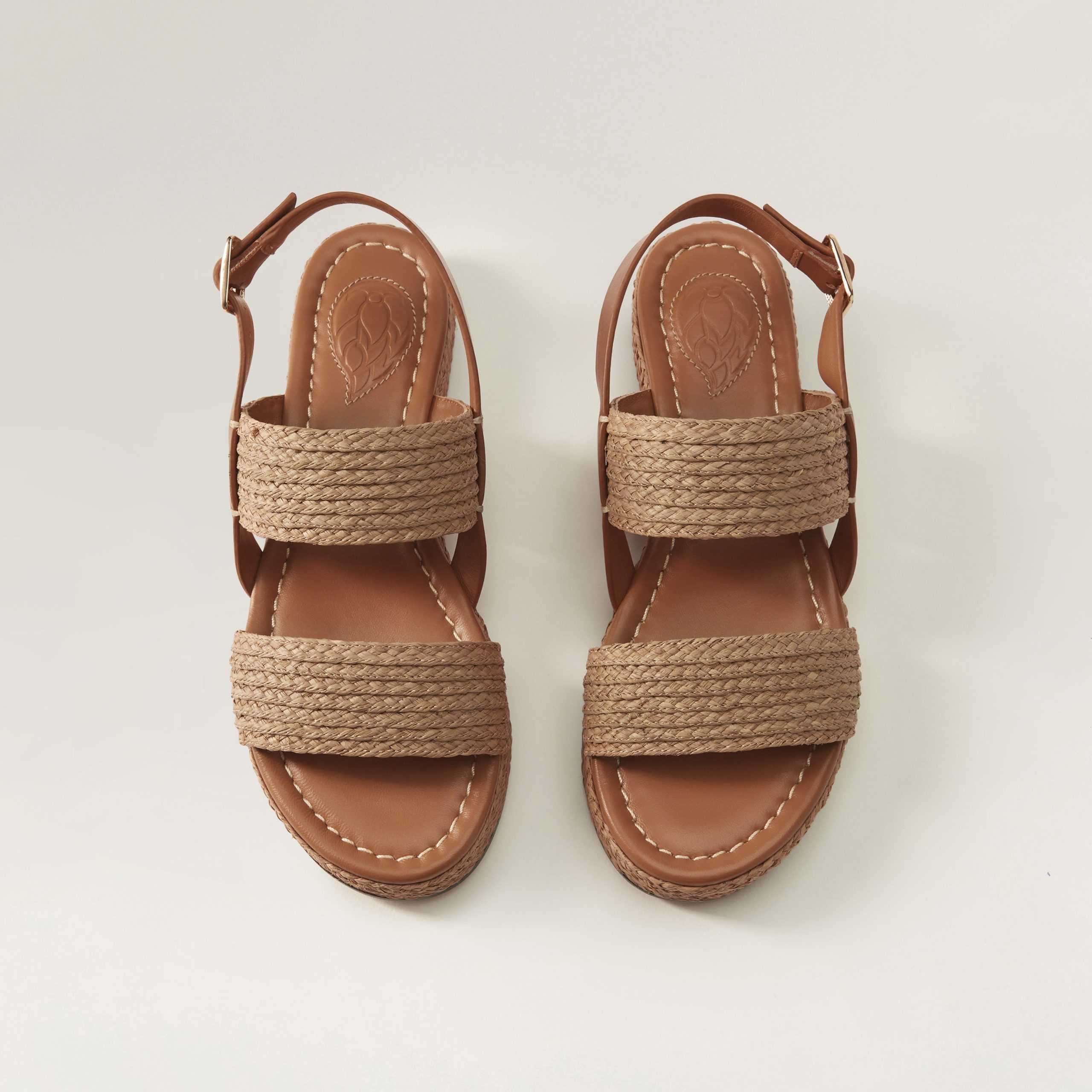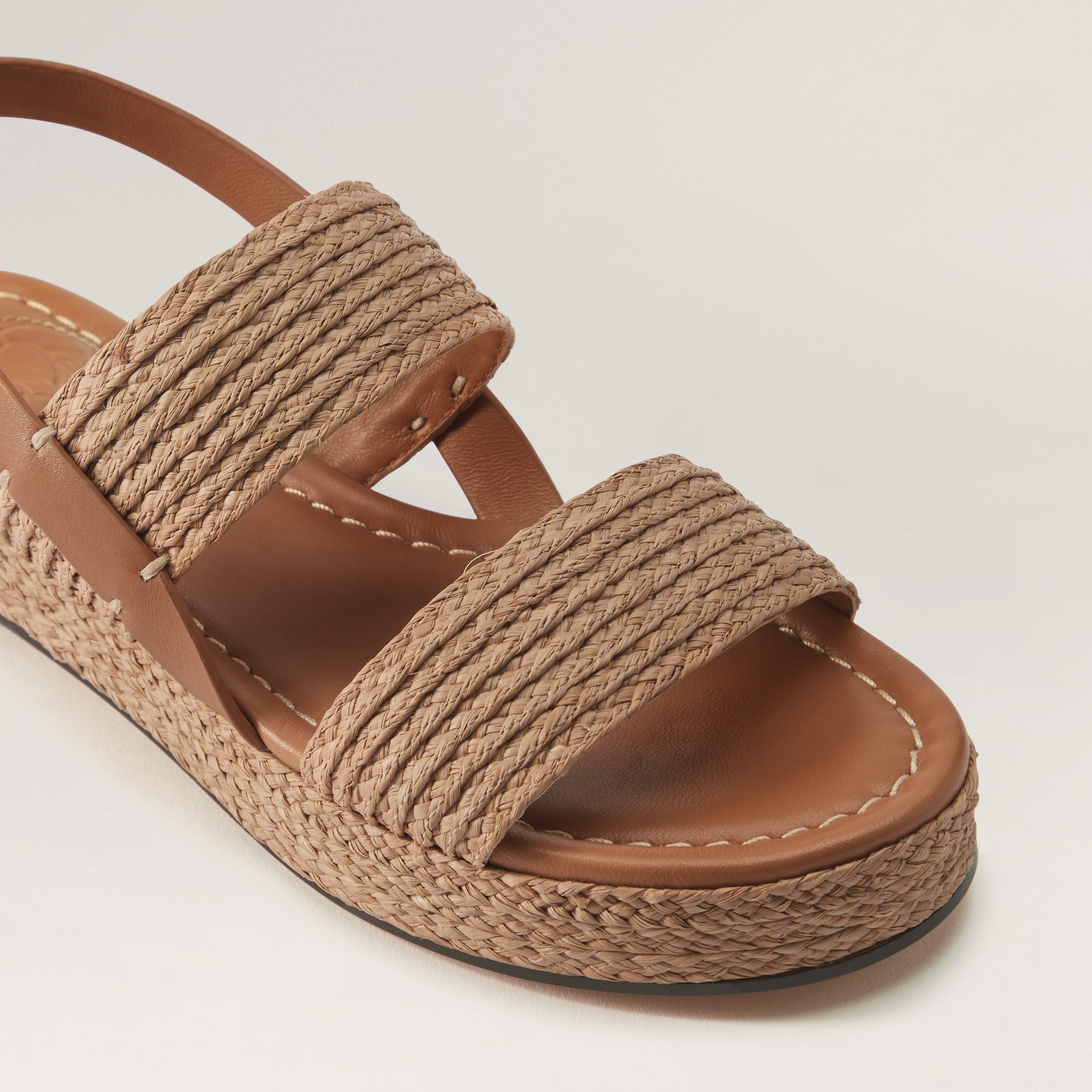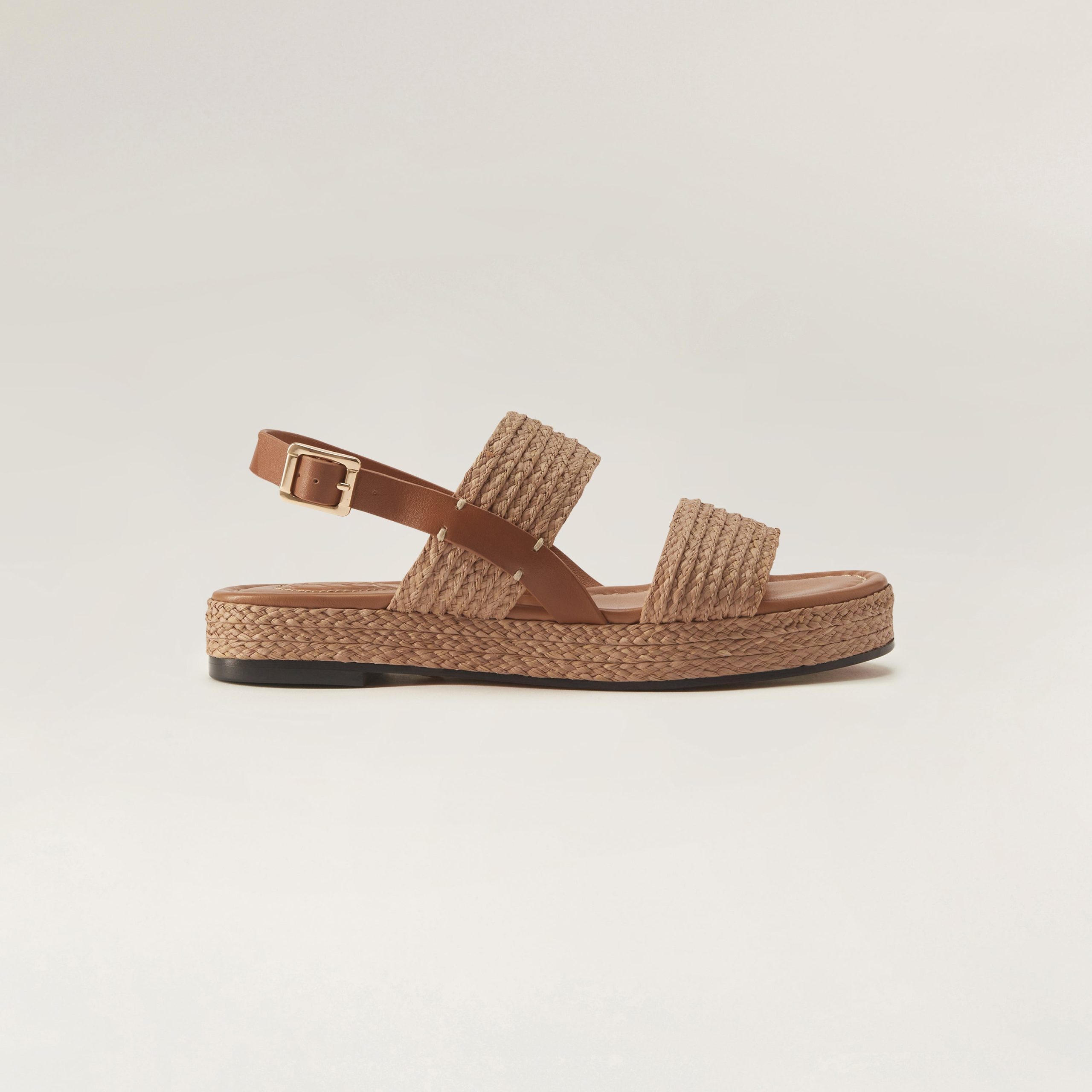 A statement design with an everyday approach. Donna features two cross straps and a uniform 2cm platform that creates a beautiful, elevated look. Crafted from smooth leather and sustainably harvested Madagascan raffia, hand woven by our artisans in Sri Lanka. Designed to be enjoyed every day – and treasured forever. Slide On Thick Sole Sandal Woven Raffia Upper Raffia Covered Platform Leather Lined Leather LinedPadded Cookie Seed Logo on Outsole