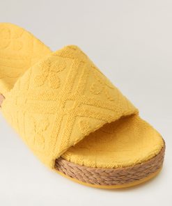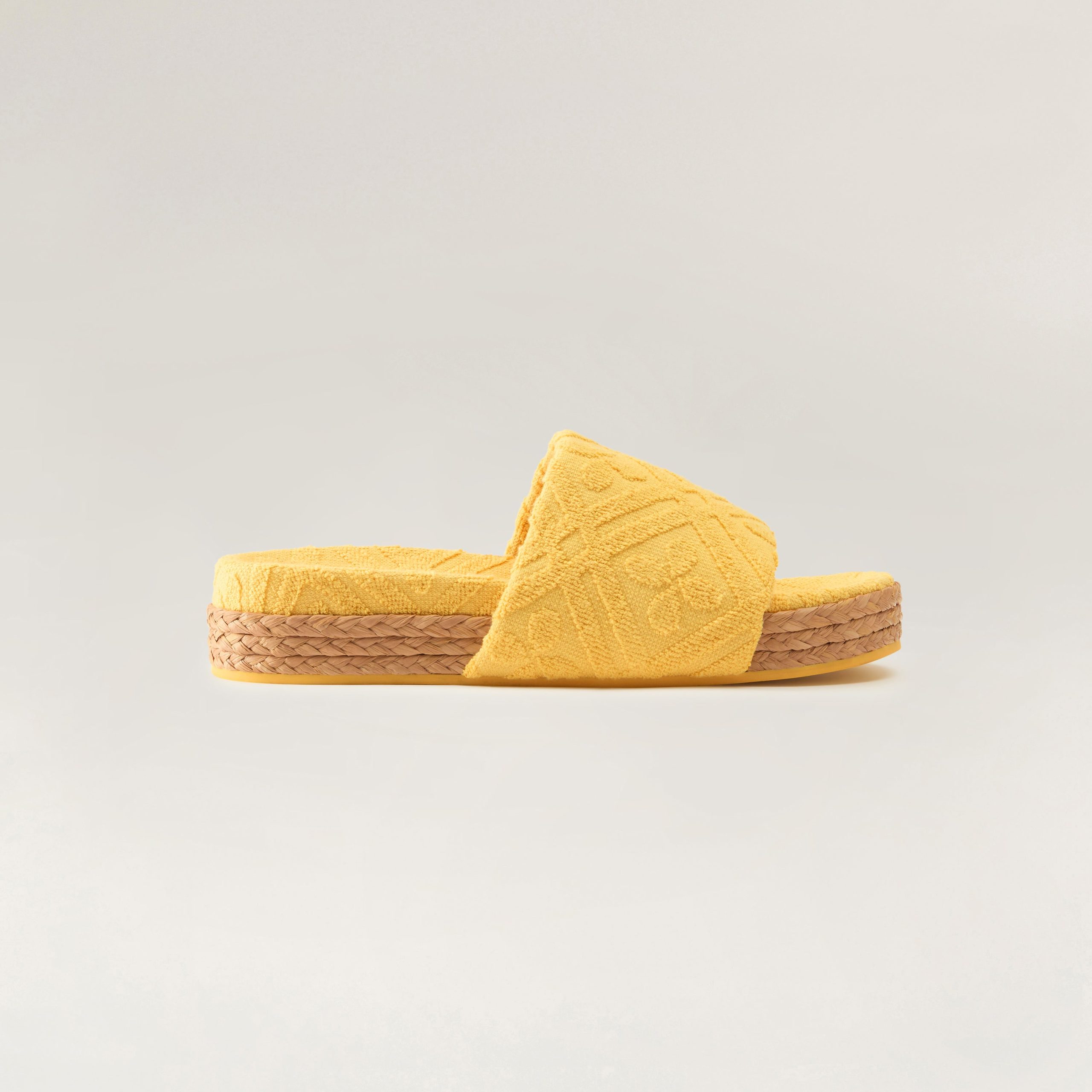 Slide into style with the Joanna Terry Slide, perfect for beach strolls, poolside lounging, or running weekend errands. Made from 100% Turkish cotton for supreme softness u0026amp; style. Embrace summer vibes with the Joanna Terry Slides. Available in medallion and parchment.Slide on SandalSpecially Crafted Terry Towelling Jacquard Design Featuring our Raffia SeedTerry Towelling Covered ABS FootbedBaby Braid Raffia covered OutsoleSignature Seed Logo Embossed on OutsoleRubber SolePlatform Height 35mm