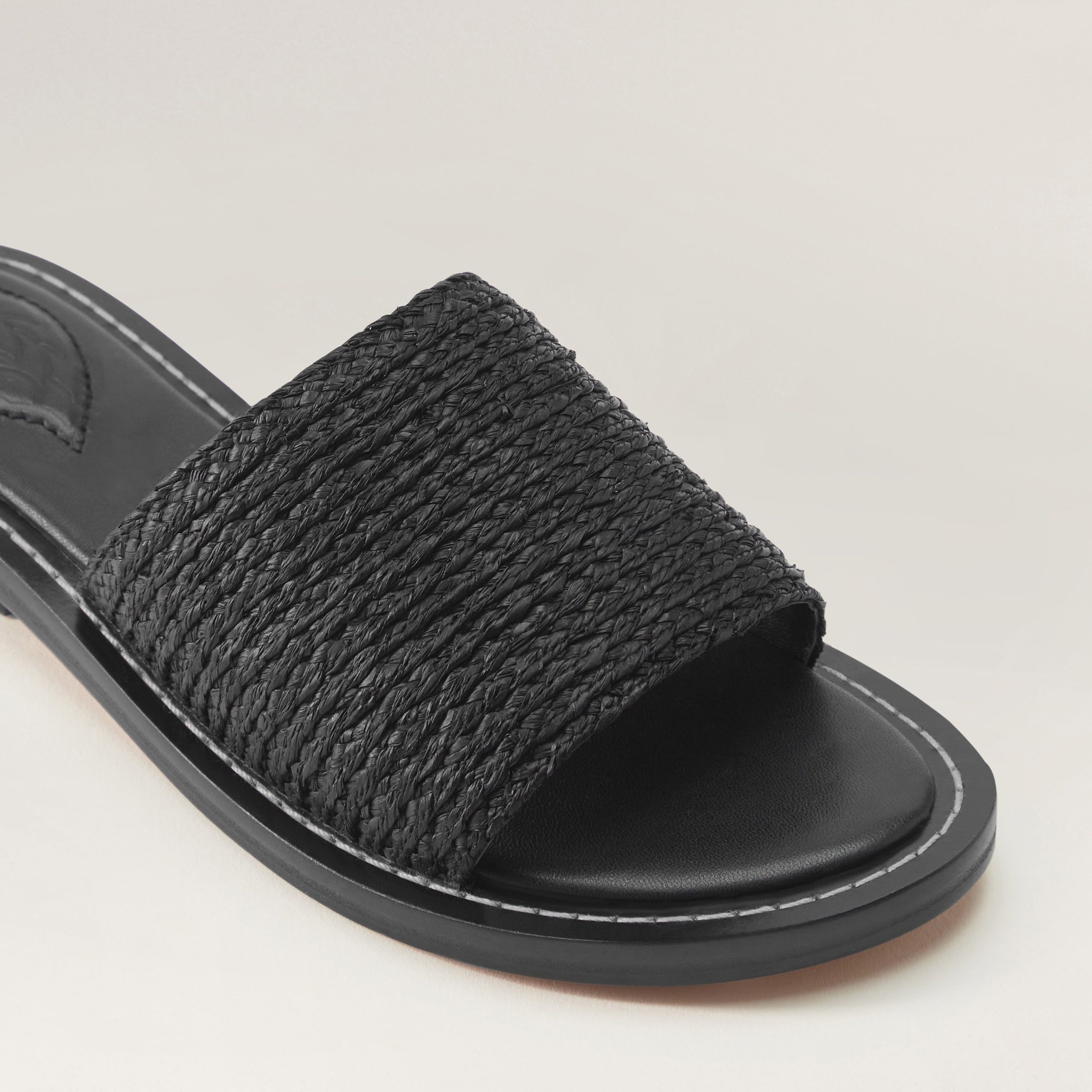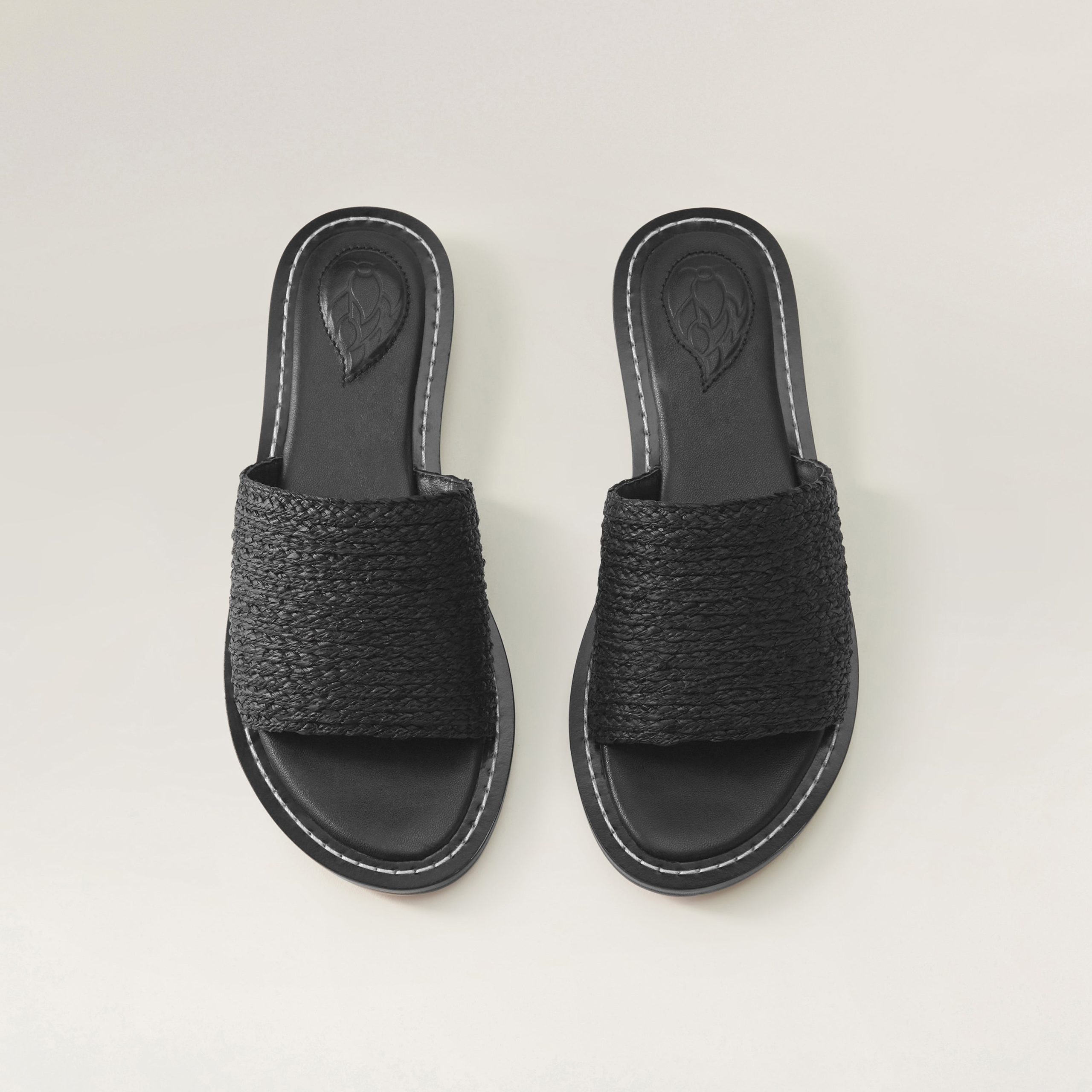 Introducing Mari; a modern slide on flat sandal constructed in overlapped 8mm raffia braid combines both style and function. Crafted from smooth leather and sustainably harvested Madagascan raffia, hand woven by our artisans in Sri Lanka. Designed to be enjoyed every day – and treasured forever. Slide on Flat SandalWoven Raffia UpperLeather LinedPadded Sole SupportSeed Logo on Outsole