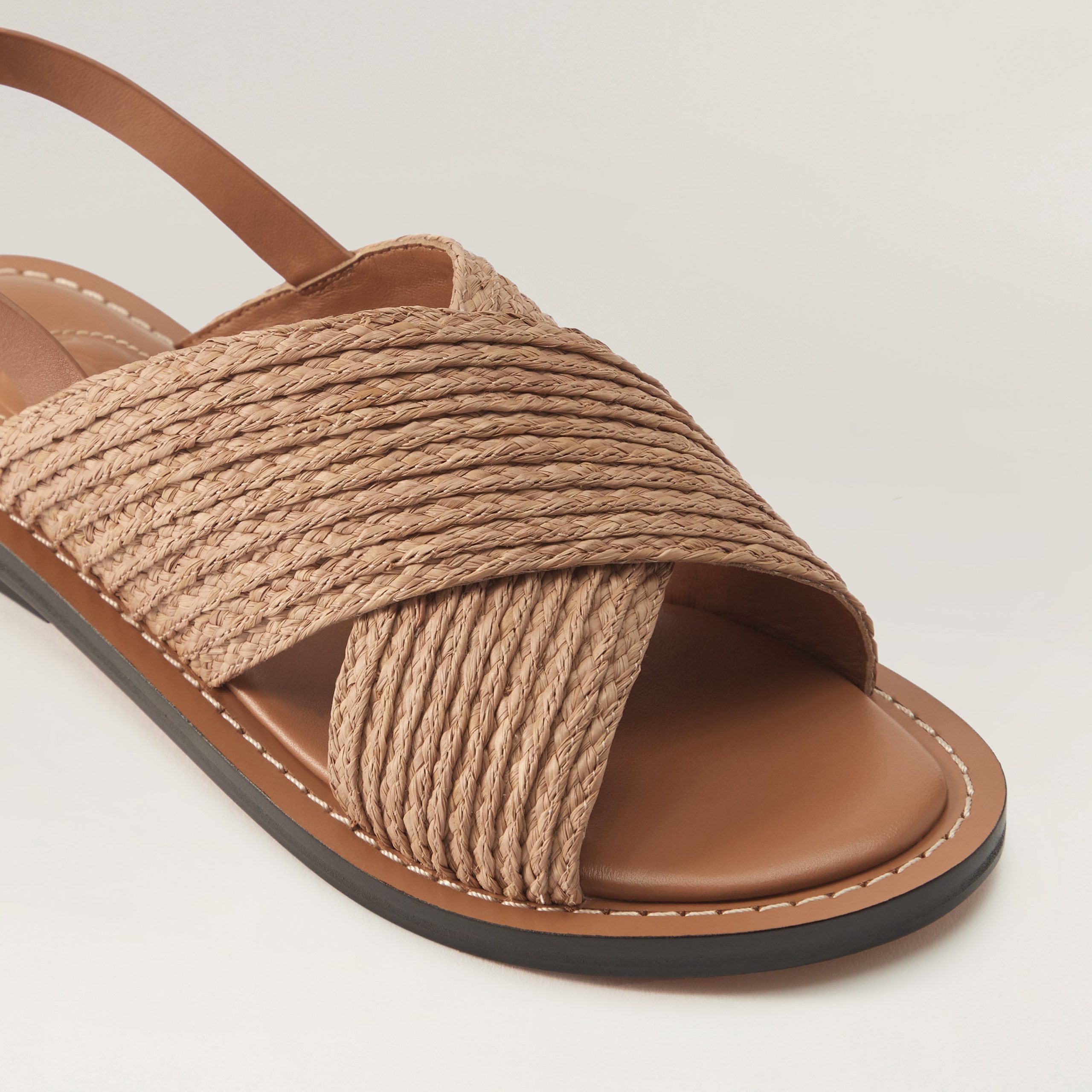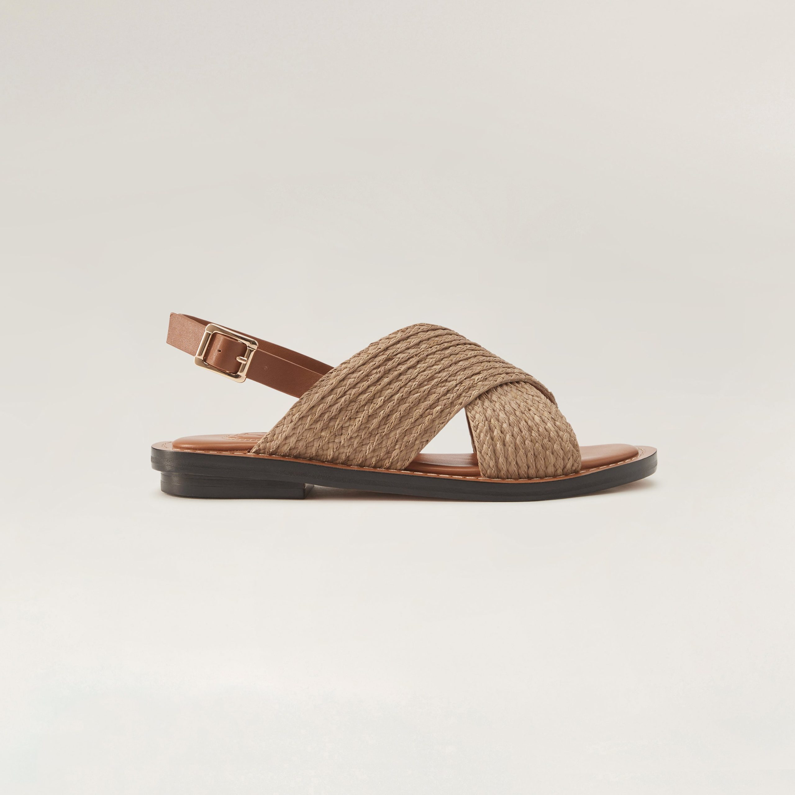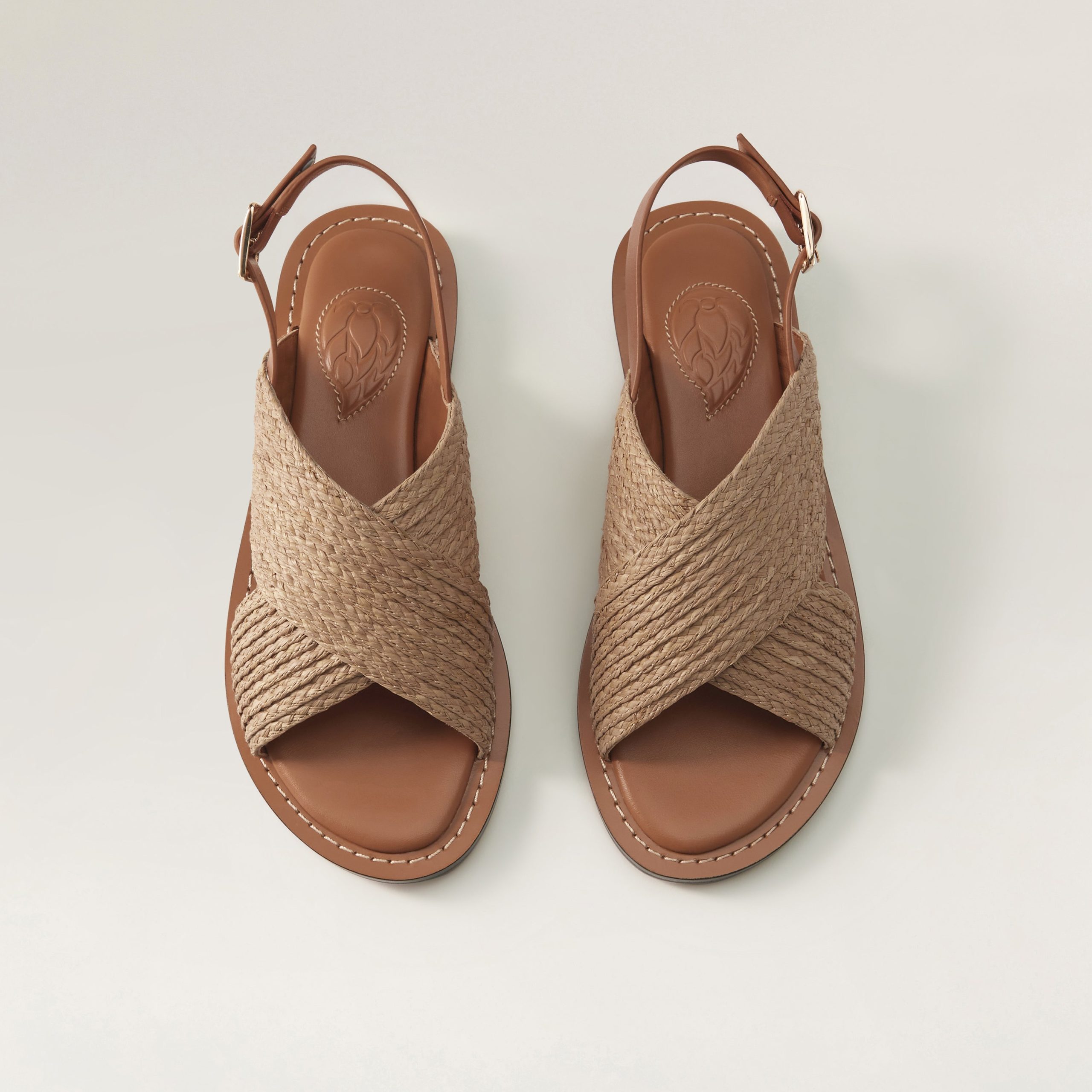 Meet Rigi; a refined flat sandal with tapering cross straps and an adjustable heel strap, designed for year-round wearability. Crafted from smooth leather and sustainably harvested Madagascan raffia, hand woven by our artisans in Sri Lanka. Designed to be enjoyed every day – and treasured forever. Slide on Flat SandalStrap Fastening with BuckleWoven Raffia UpperLeather LinedPadded CookieSeed Logo on Outsold