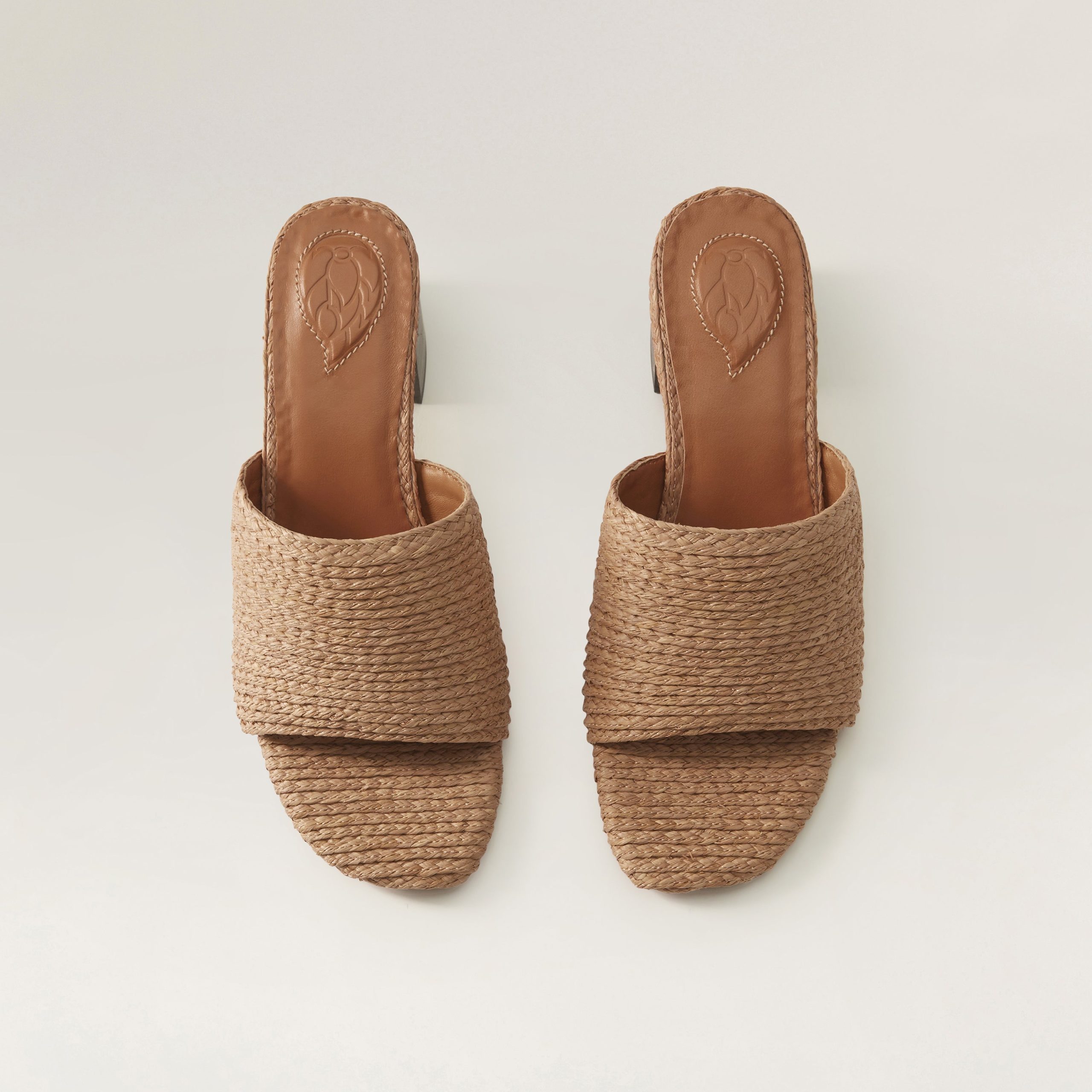 Step out in style with Tira; this 5cm slide on heeled mule constructed in overlapped 8mm raffia braid is designed to elevate any look. Crafted from smooth leather and sustainably harvested Madagascan raffia, hand woven by our artisans in Sri Lanka. Designed to be enjoyed every day – and treasured forever. Slide on Heeled 5cm MuleWoven Raffia UpperLeather LinedSeed Logo on Outsole